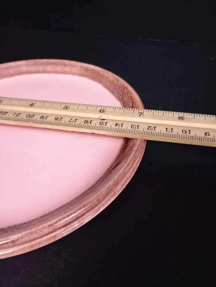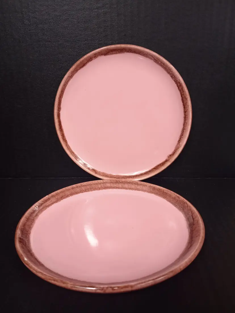 Vintage 2 piece set of Jaska of California Mid Century 1950s Pink/Brown Drip 7 in plates