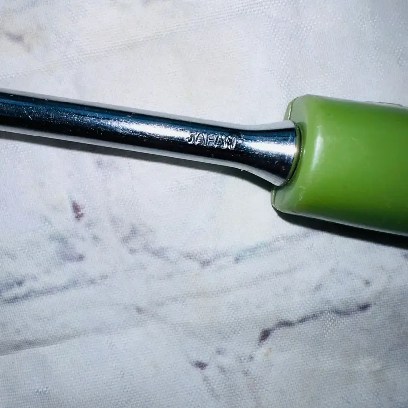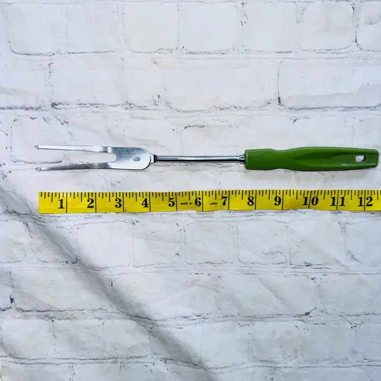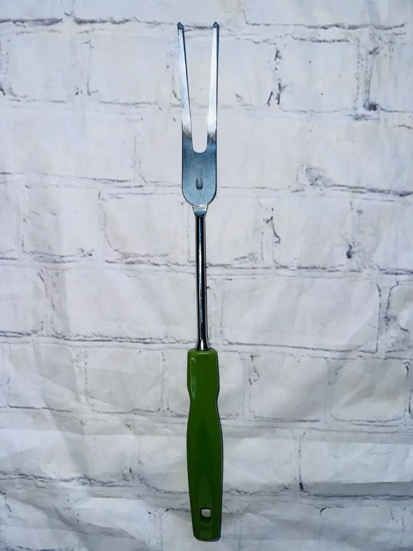 Excellent Vintage 2 Prong Serving Meat Turning Fork 12" Green Plastic Handle Japan. Smoke Free Home. #MCM #vintage #meatturningfork #japan