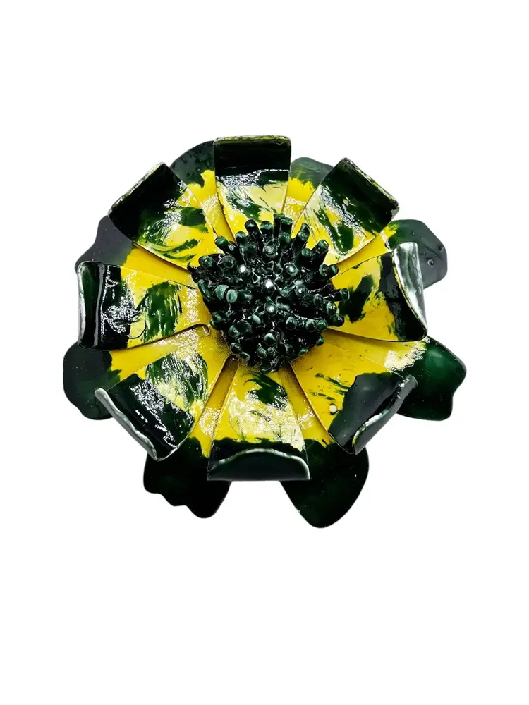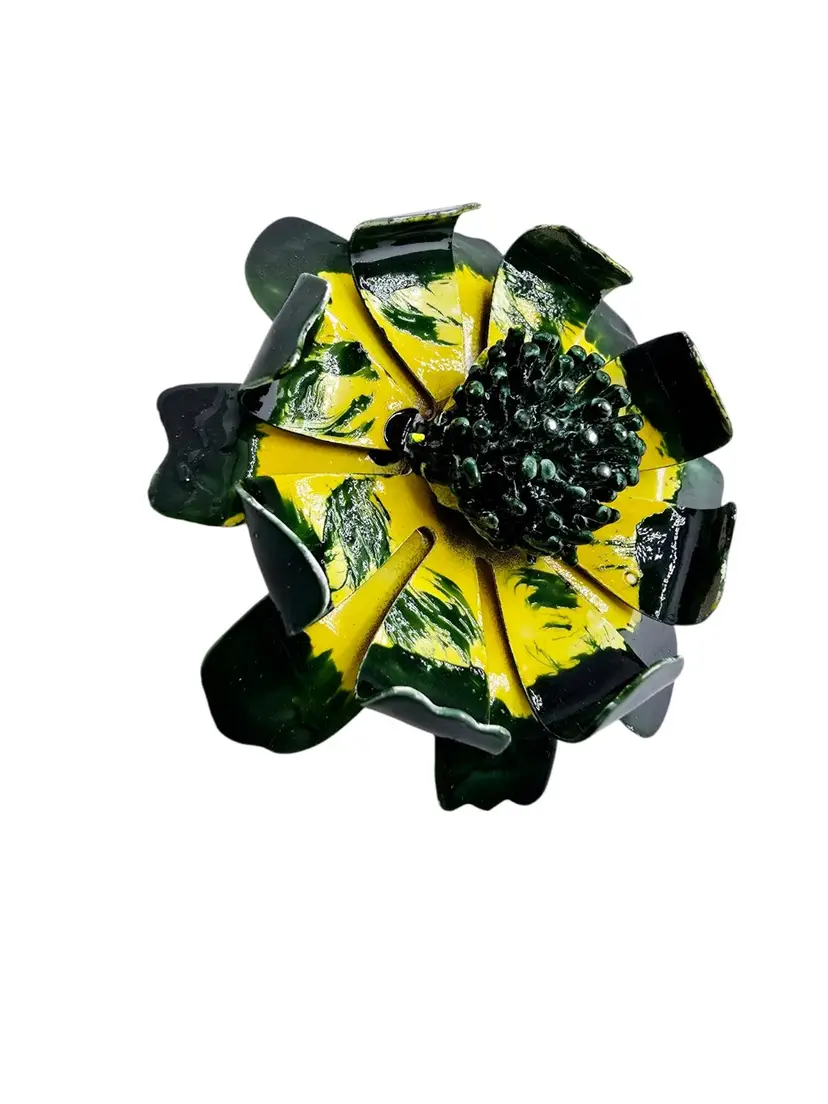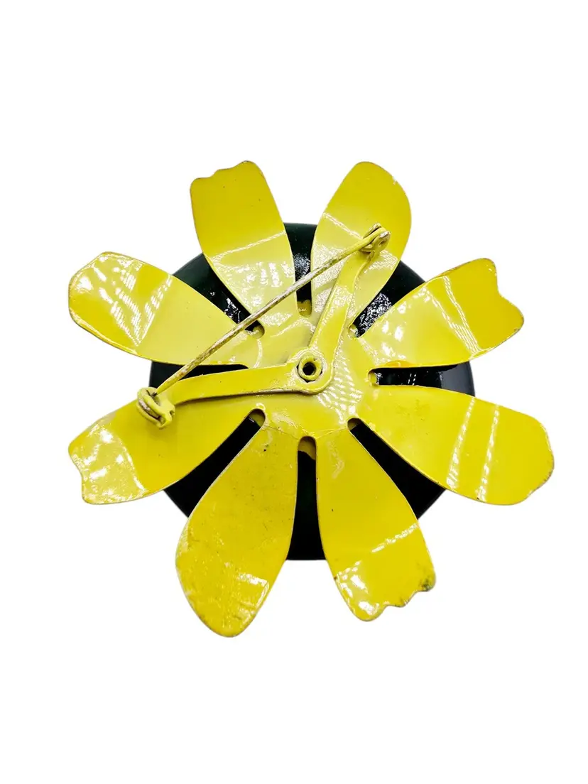 Vintage 2 Tone Enamel Dimensional Flower Brooch (A7179)