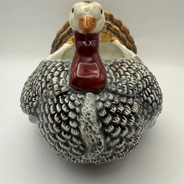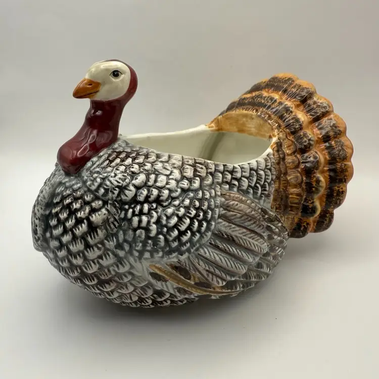 Wonderful, vintage 2001 Warren Kimble ceramic turkey planter. Nice paint coloring and glaze No chips or cracks This planter is approximately 7 1/4 inches in length. It is approximately 4 3/4 inches tall and is approximately 5 inches wide at the widest point.
