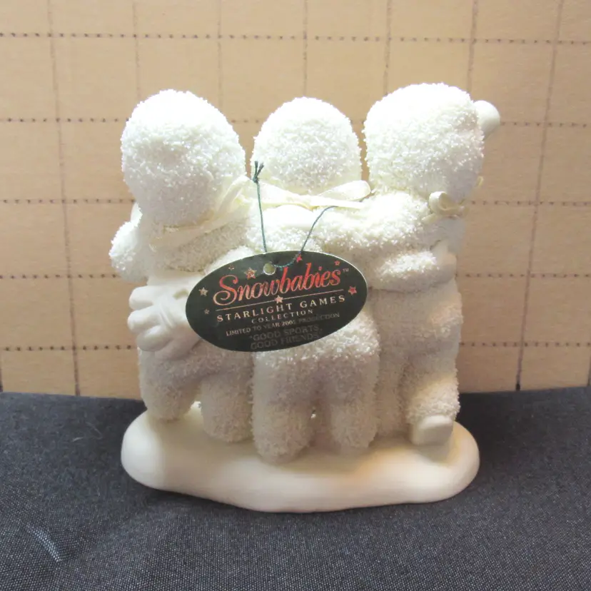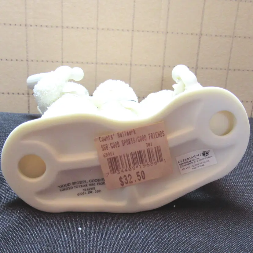 Vintage 2001/02 Dept 56 Good Sports Good Friends Snowbabies Figurine No issues No Box but tags still on Made in Taiwan Each square on background = 1 in.
