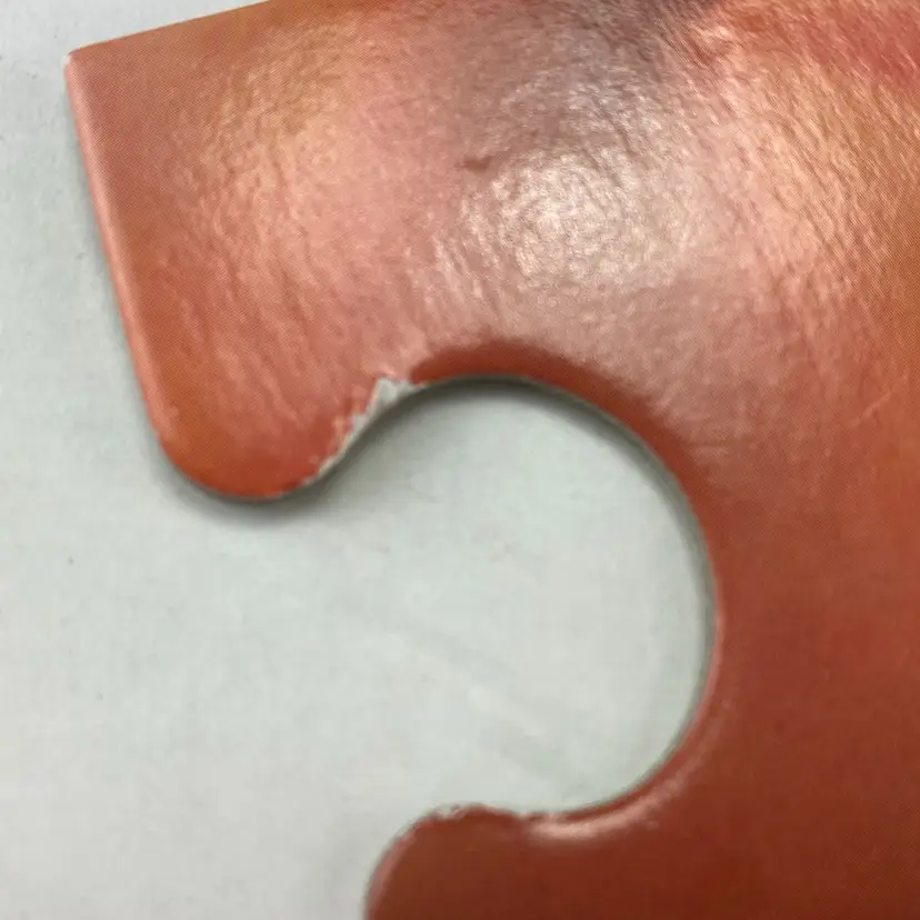 Box shows wear and tape used. Puzzle pieces are intact with one showing a lifted edge - see photo Measurements: 12.5 x 15 inches when assembled.