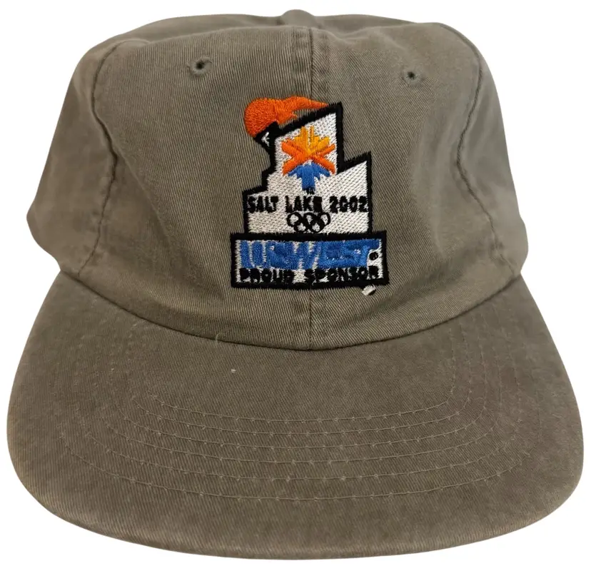NWOT The Vintage 2002 Salt Lake City Winter Olympics Flat Brim Beige Adjustable Hat is an official cap featuring the official logo of the Salt Lake 2002 Olympics. This hat is designed to commemorate the historic event and showcases the USA Olympic team's colors and insignia. The beige color and unisex adult size make it a versatile and stylish accessory for any fan or collector.