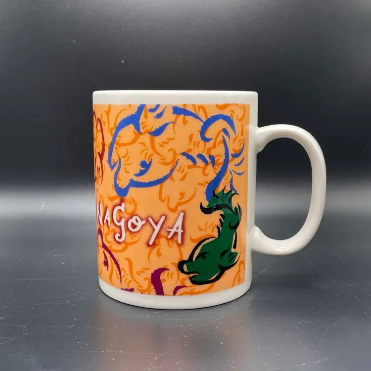 This is a 2007 Starbucks Nagoya, Japan coffee mug. Measures approximately 4" tall x 3" across, and holds approximately 16fl oz. No chips or cracks.