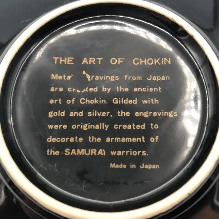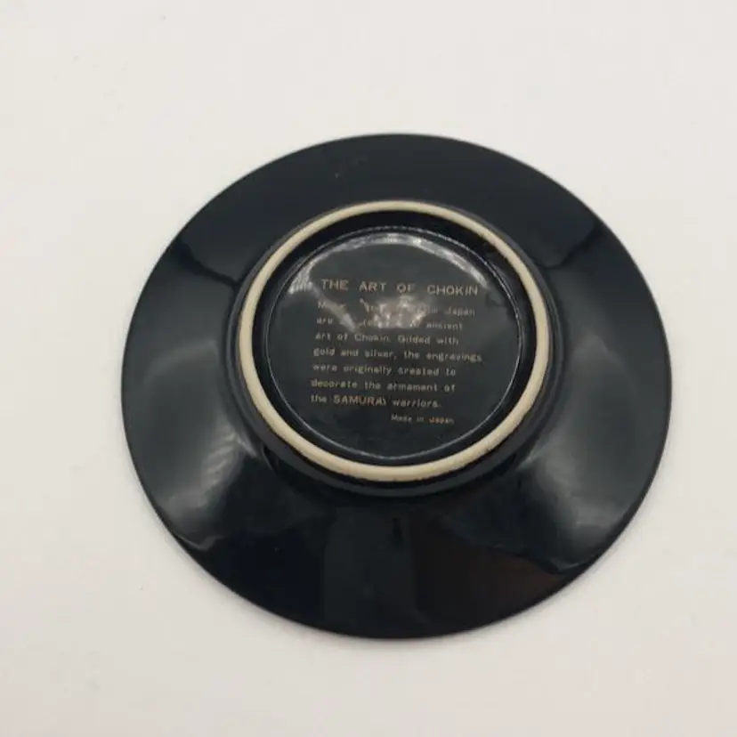 Vintage 24 KT Gold trim Japanese The Art of Chokin Gold & silver Trinket Dish 4" Floral and Peacock Theme EVC Shows little wear for age of item.