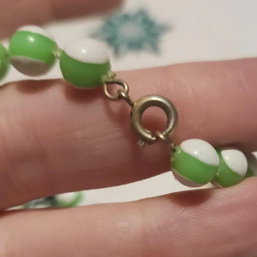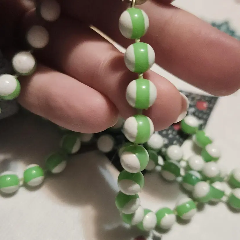 Nice long necklace with striped beads in good shape