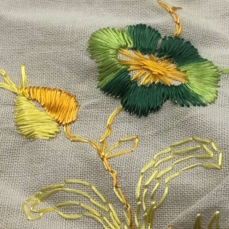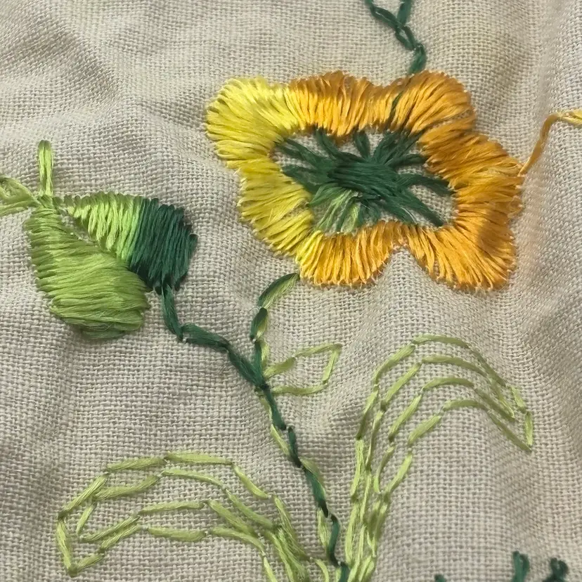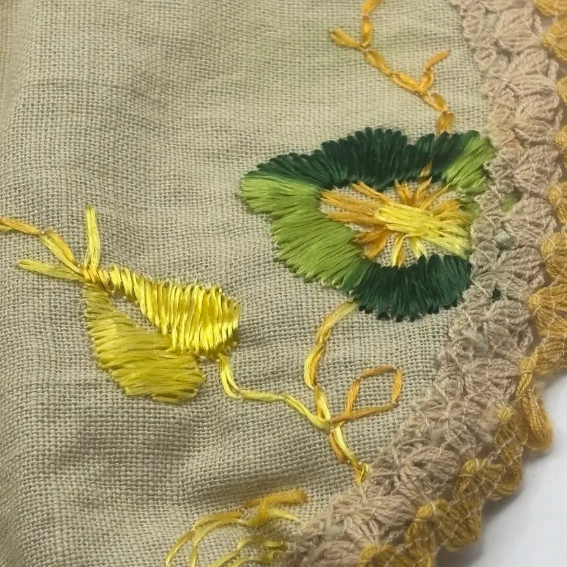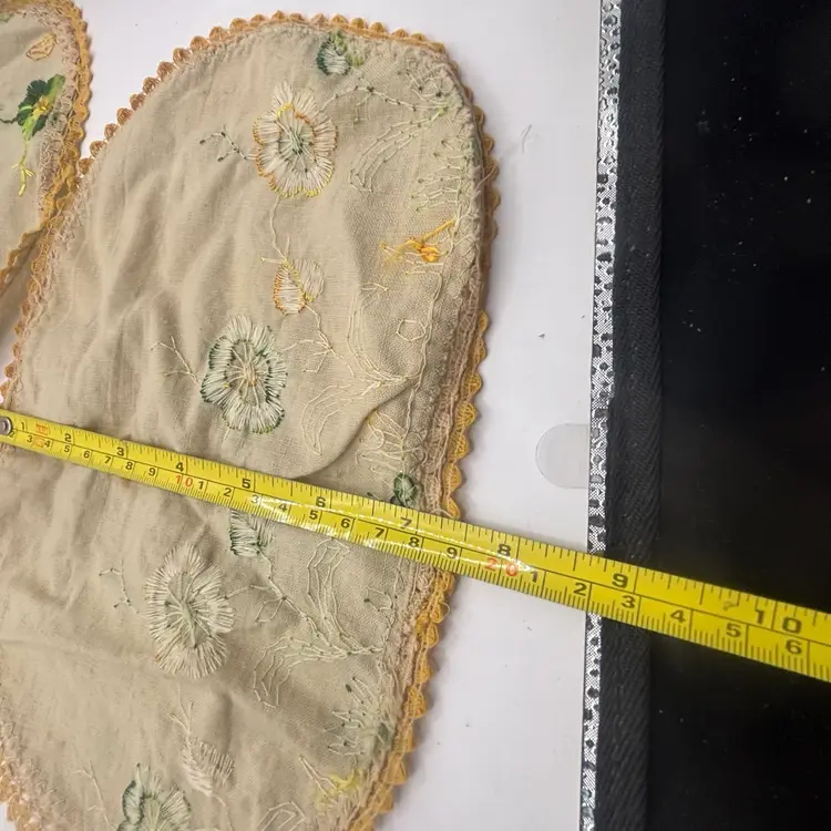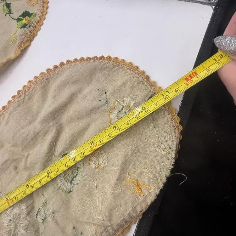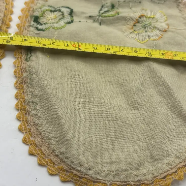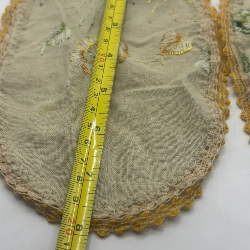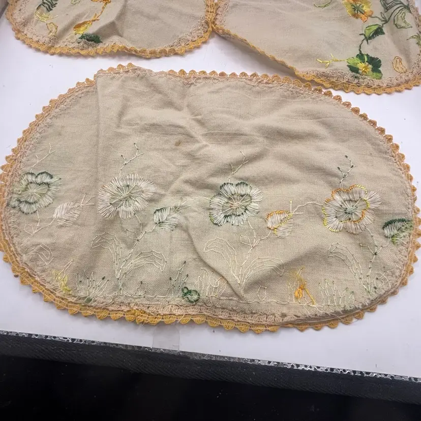 Vintage 3 Piece Hand Satin Thread Crewel Embroidered Linen Dresser Set Doilies Measurements in pictures