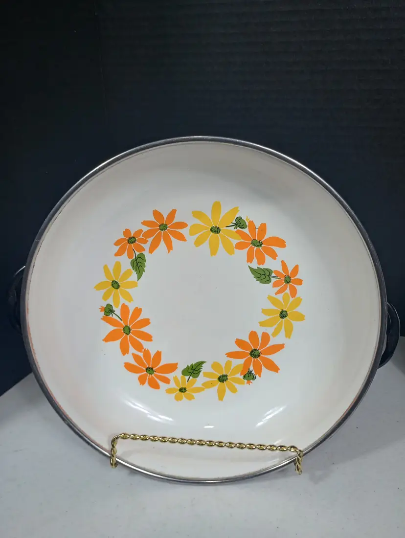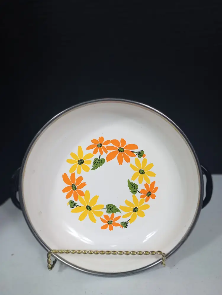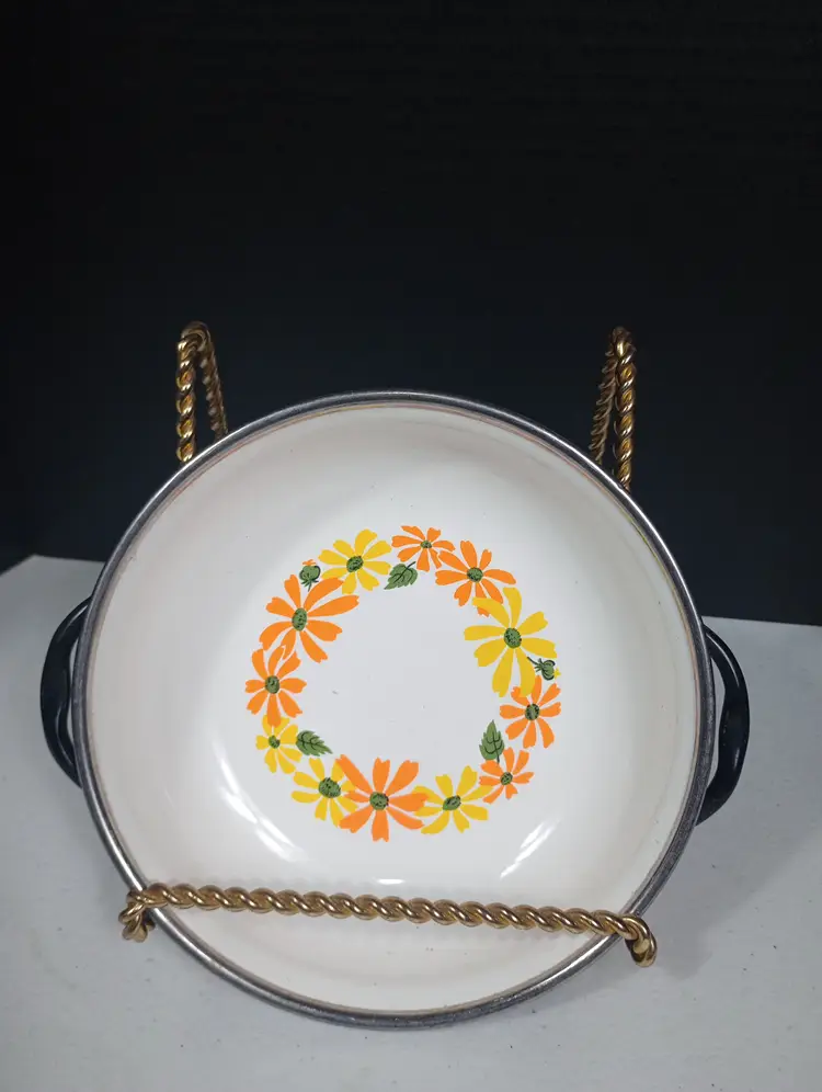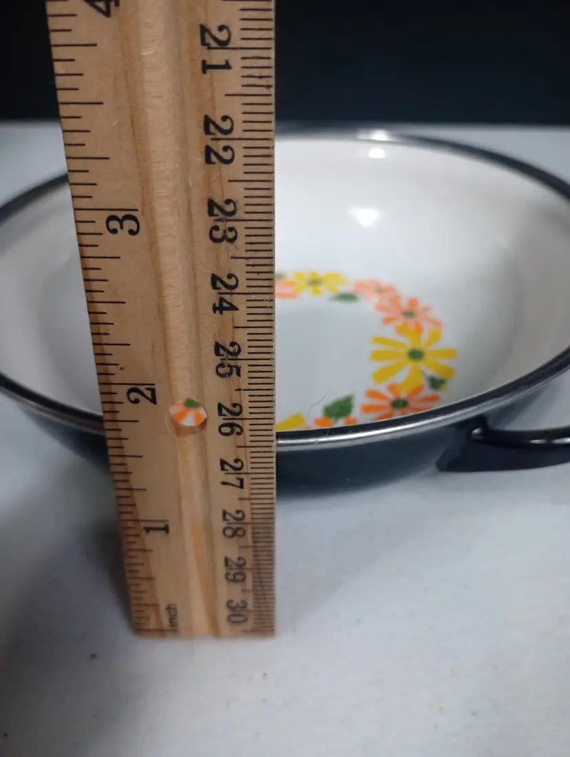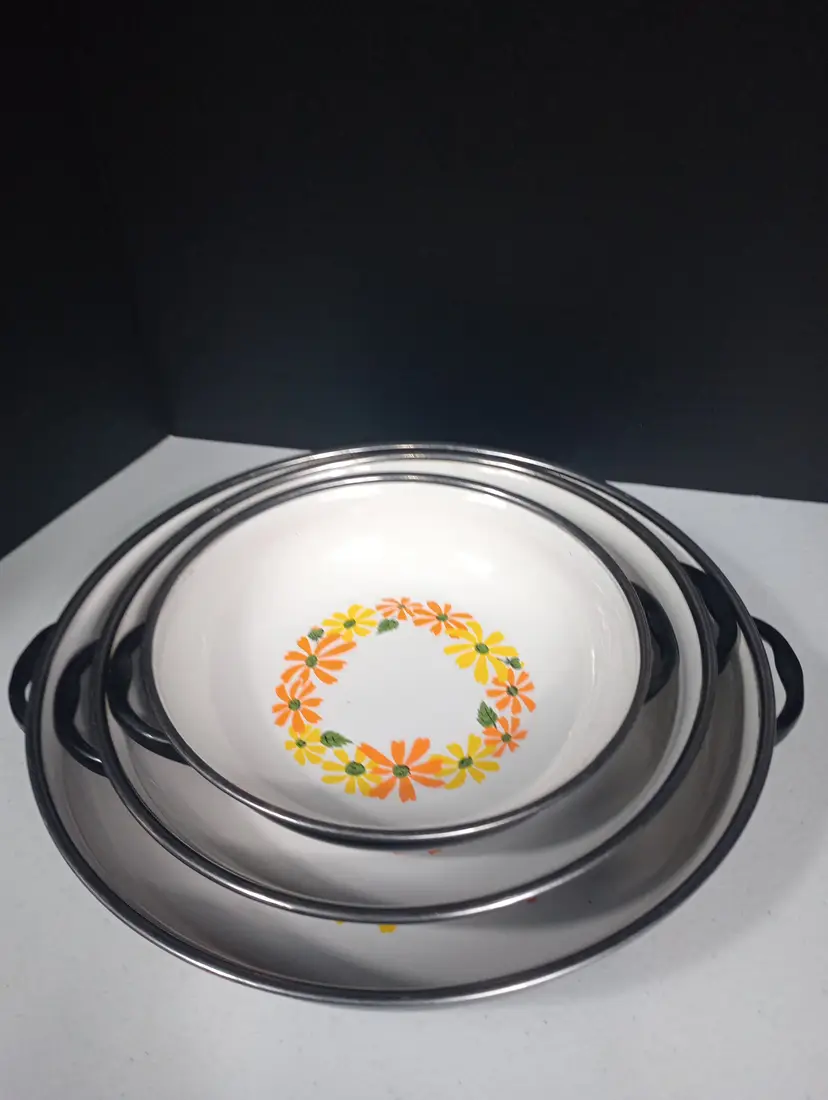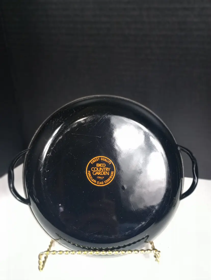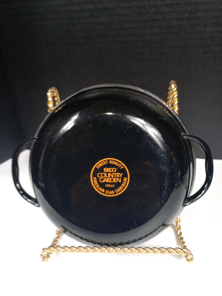 Vintage 3 Piece Set Ekco Country Garden Finest Quality Porcelain Clad Cookware Made in Italy.