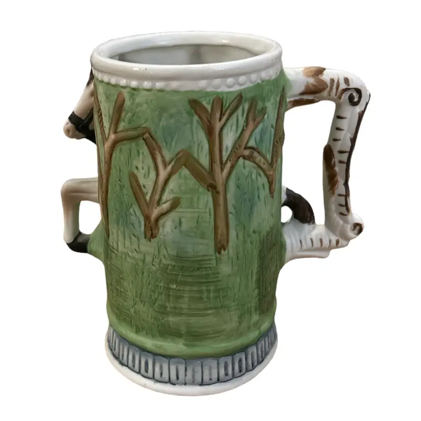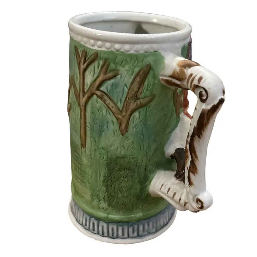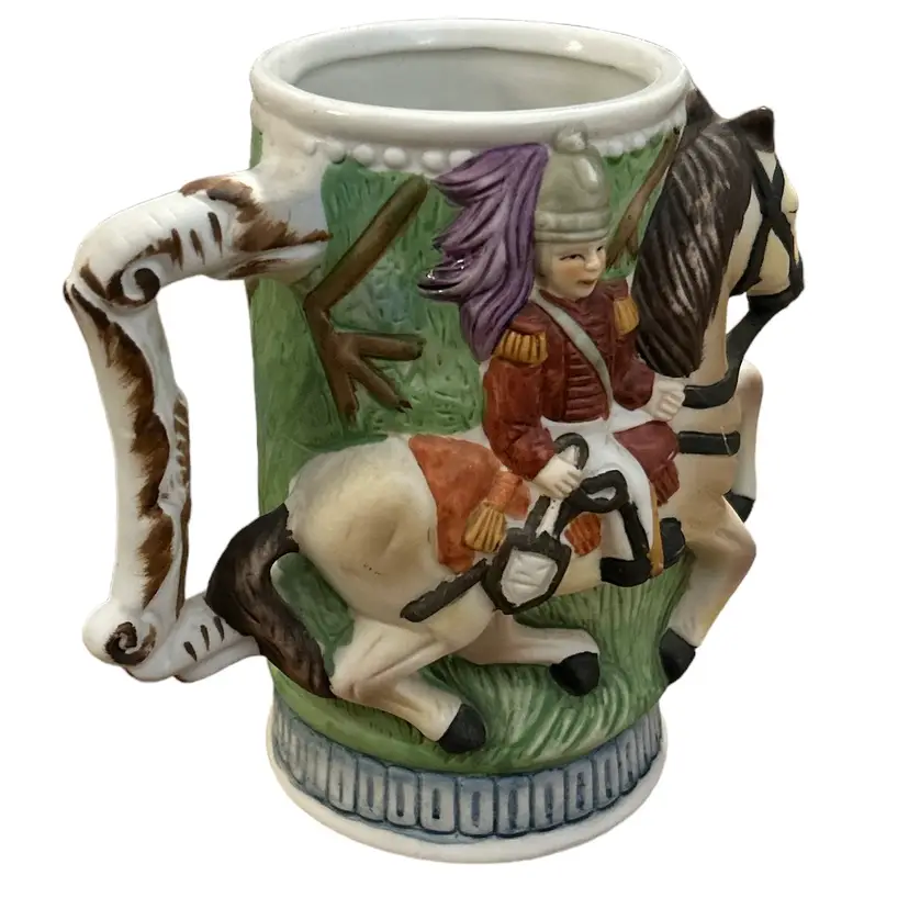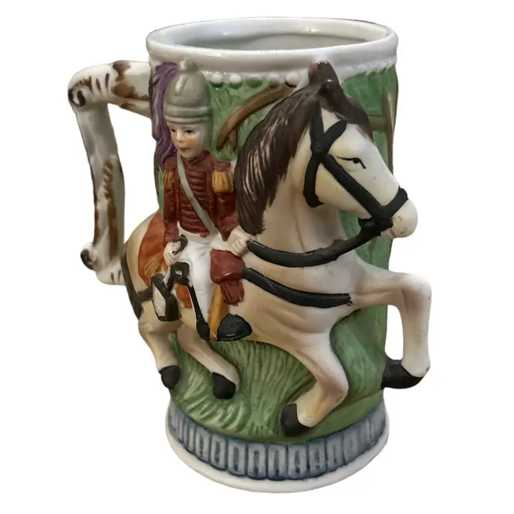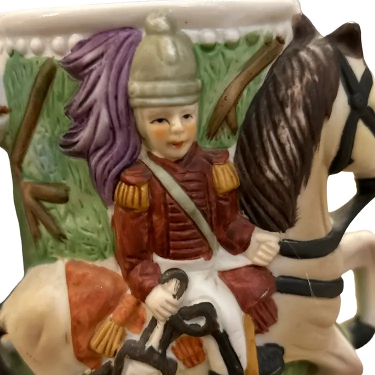 Sip your favorite beverage in style with this unique ceramic mug featuring a detailed cavalry soldier on horseback. A perfect collectible for history enthusiasts. Dimensions: 6.5" x 7"