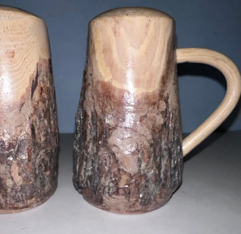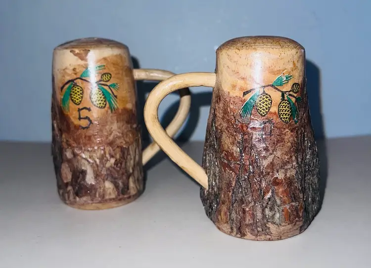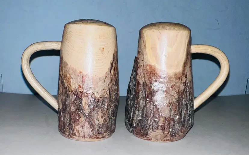 Lodge style live edge salt and pepper shakers. 4”