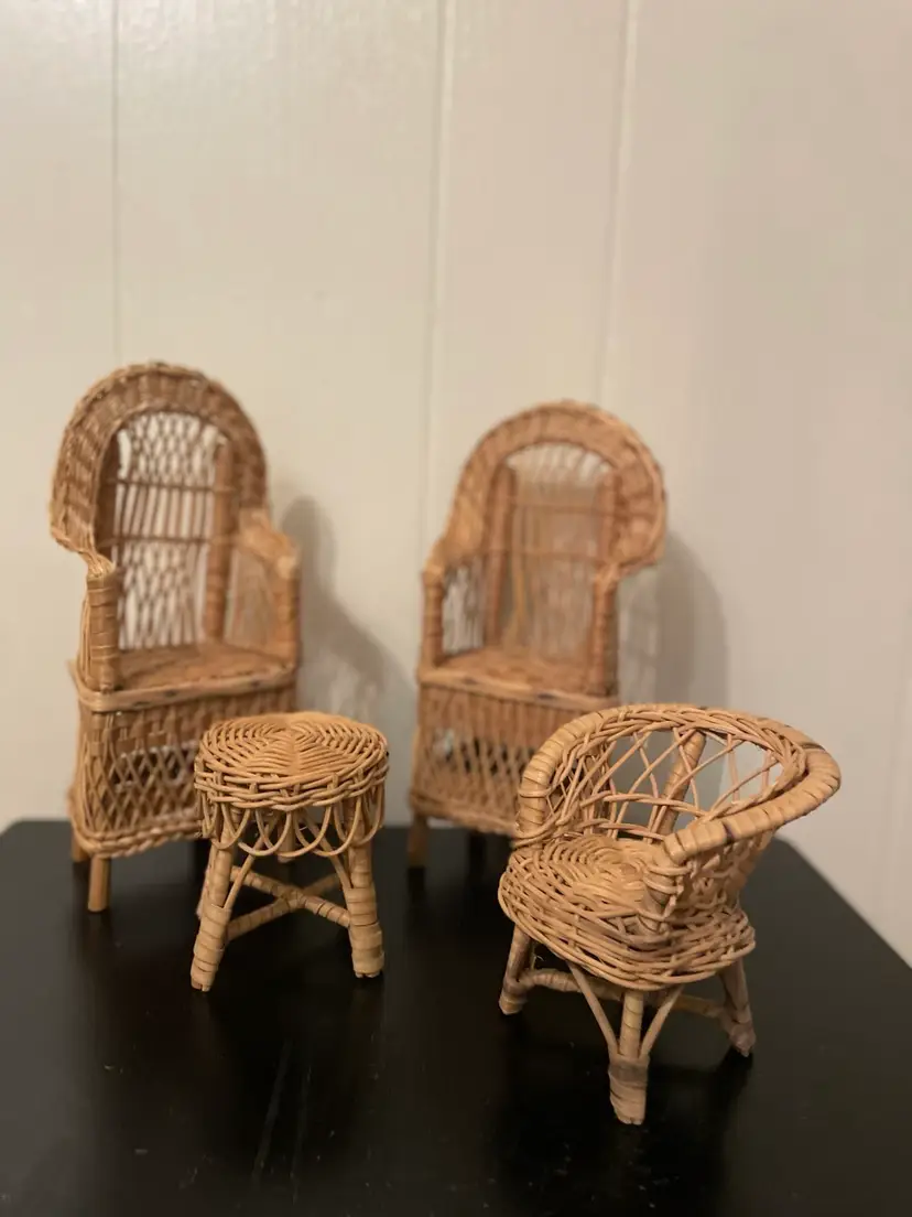 Adorable set of vintage wicker doll furniture in excellent condition.