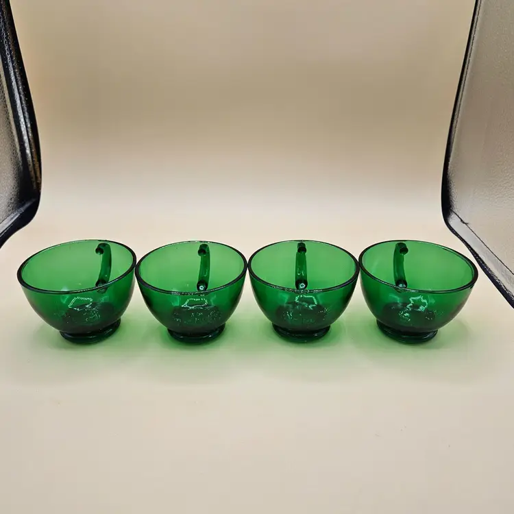 No chips cracks or repairs. Pressed glass. 2.5"H x 3.25" in diameter not including the handle.