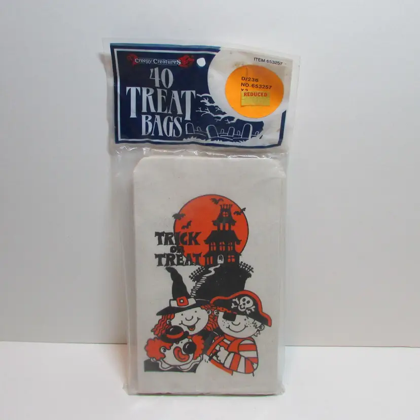 These fun bags are still sealed, the treat bag is about 6 3/4" x 4" and the package is about 10" x 4 1/2". This is shipped from a smoke free home. Thanks for looking!