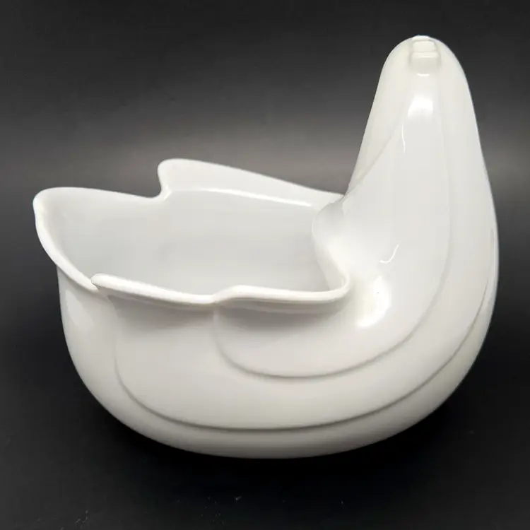 There are no chips or cracks. It is more white in color than shown in the photos.