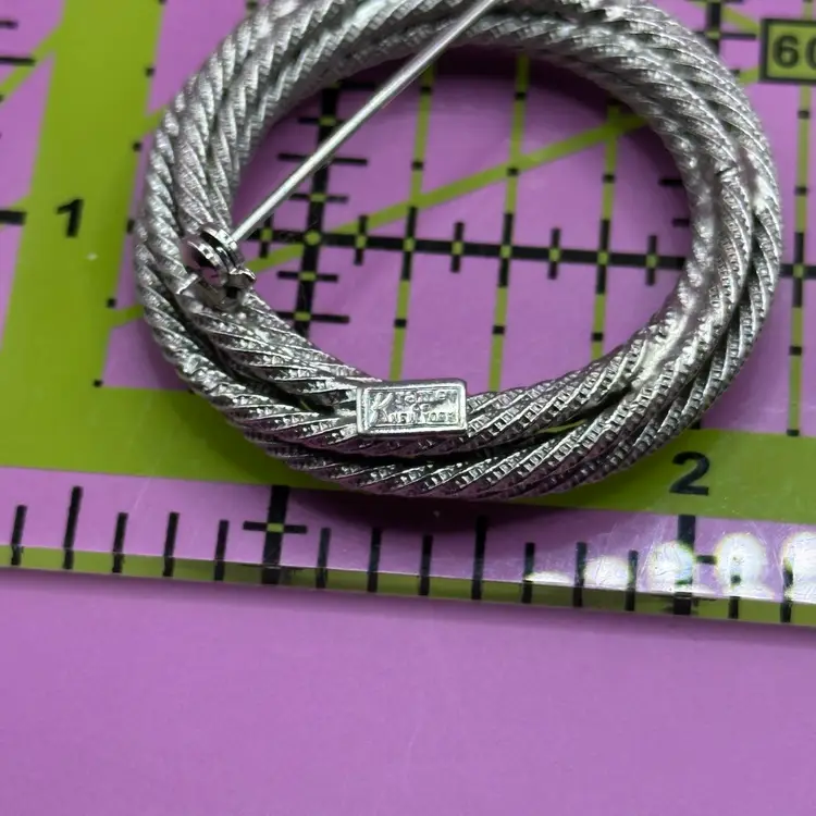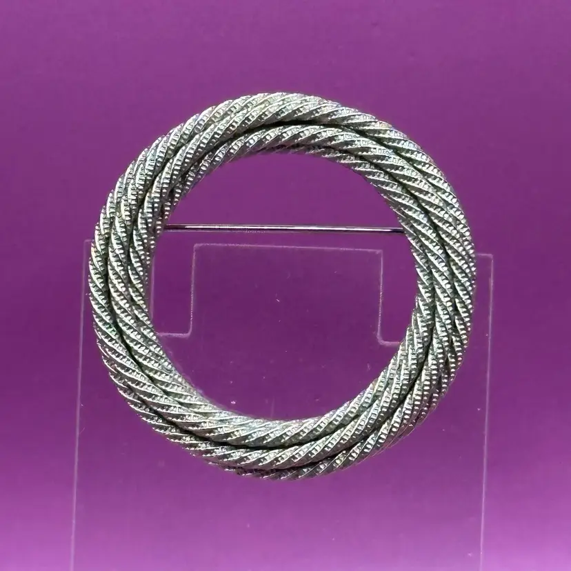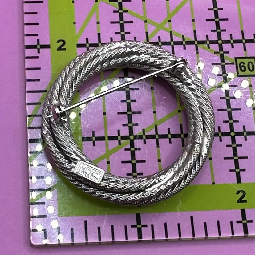Kramer New York Silver Tone Rope Wreath Vintage Brooch