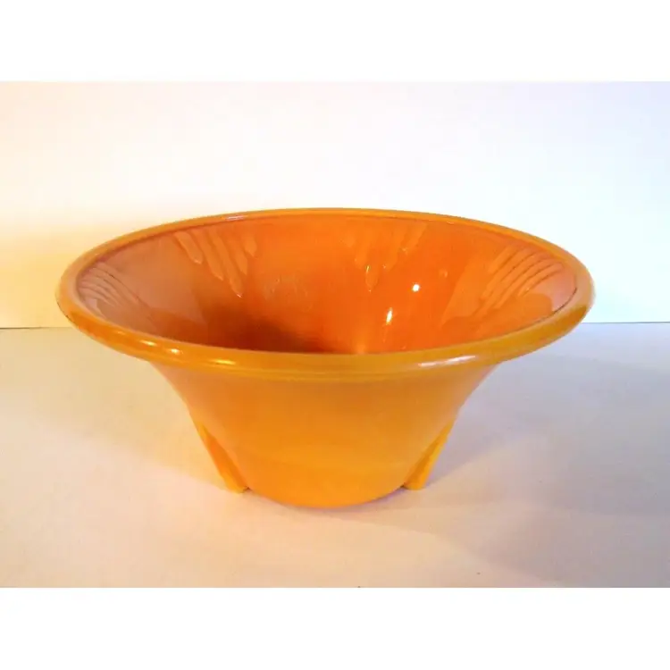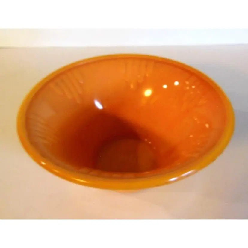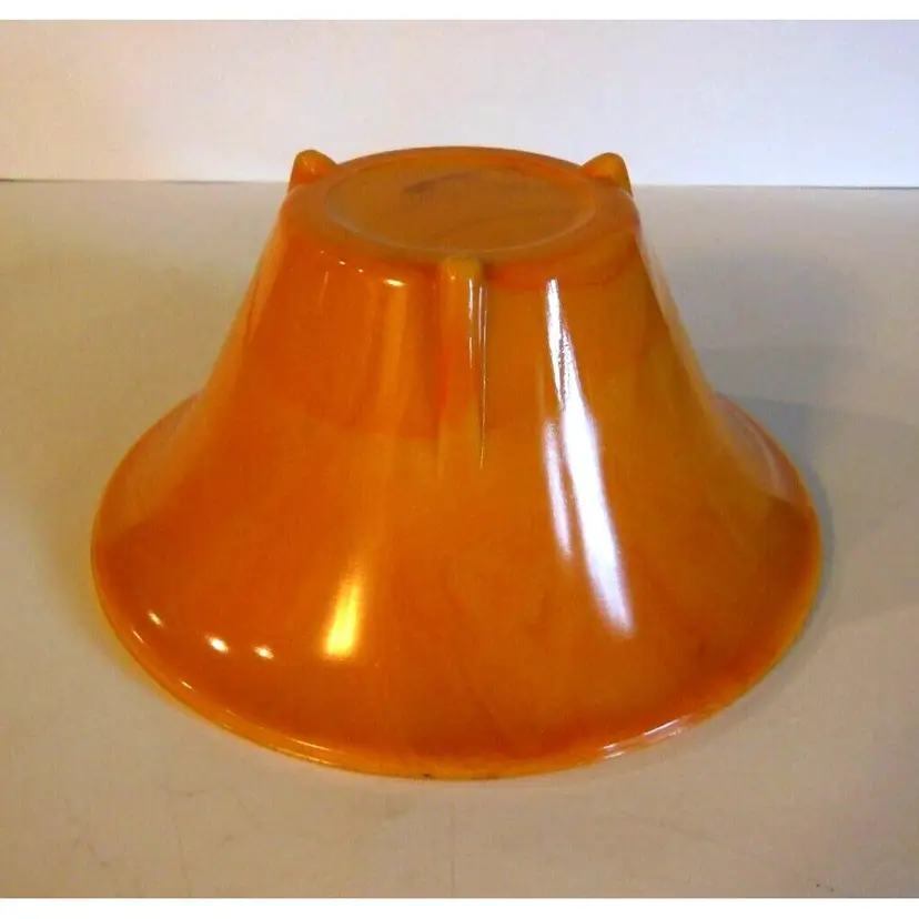 This is a vintage and rare, 6" Akro Agate # 340 Dart Bowl Type III ORANGE. ART Deco Total measurements are 6.0" in diameter and 3.0" high. It glows neon orange under UV light-see 2'nd pic. It is very similar in color, to the popular Bittersweet color of Smith Glass. It is in great condition!! Please see all pics, as they are part of the description.
