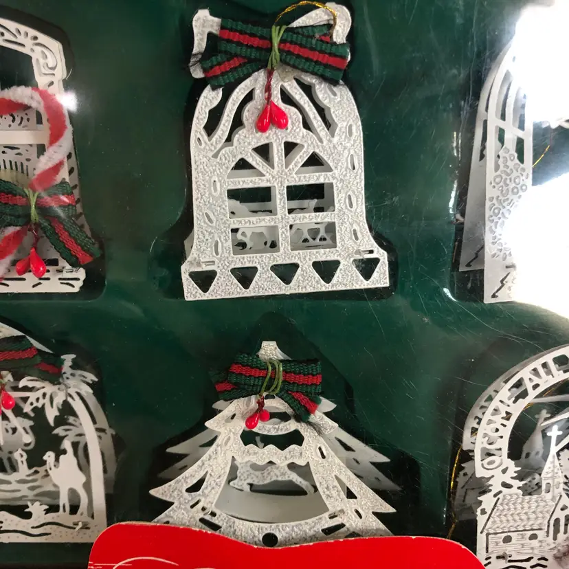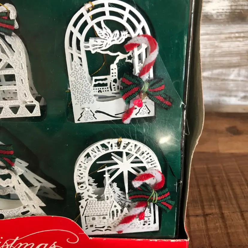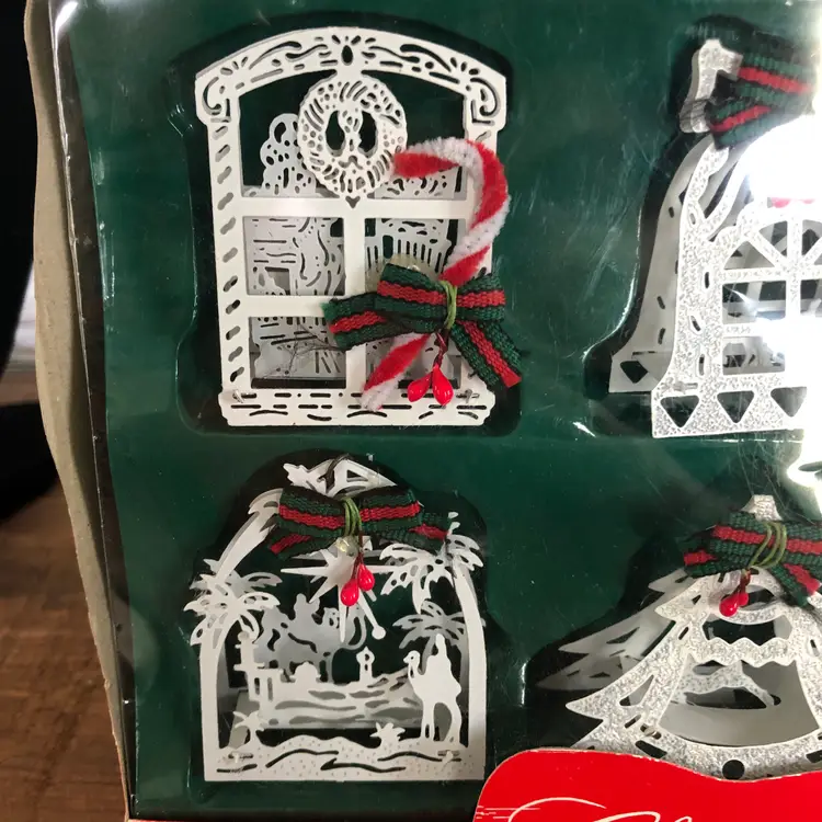 Vintage 6 White Metal Enameled Brass 3D Holiday Ornaments House Of Lloyd In Box Excellent used condition Approximately 2.25" Colors and textures may vary slightly from photos. Smoke-free home Don’t hesitate to ask any questions you may have. Thank you!