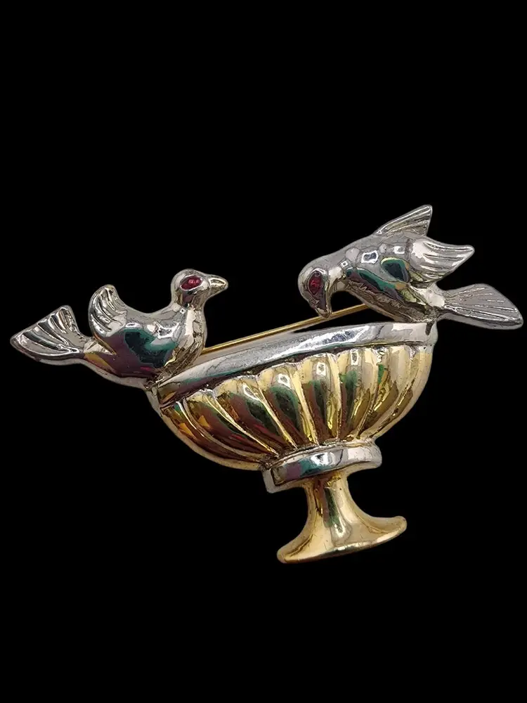 Vintage 60/70s 2-Tone Bird Bath Figural Brooch (A4881)