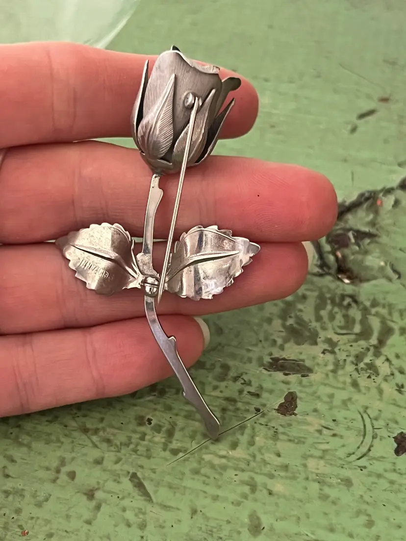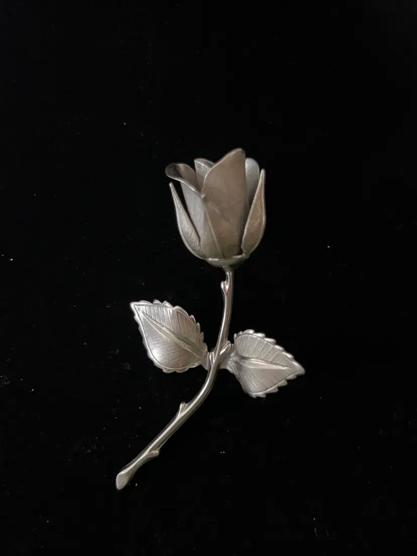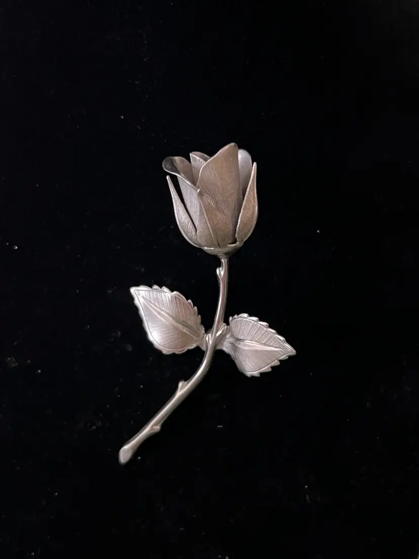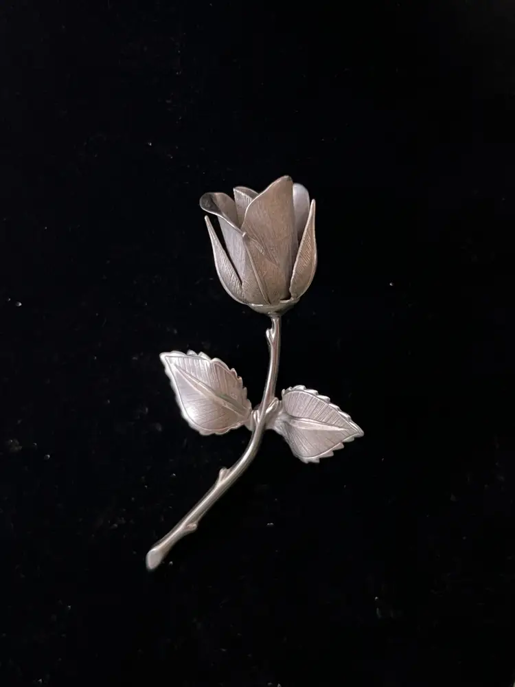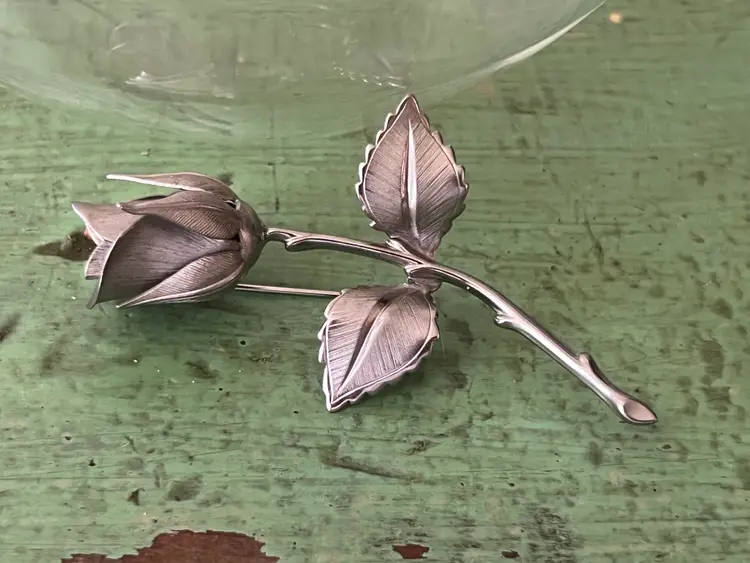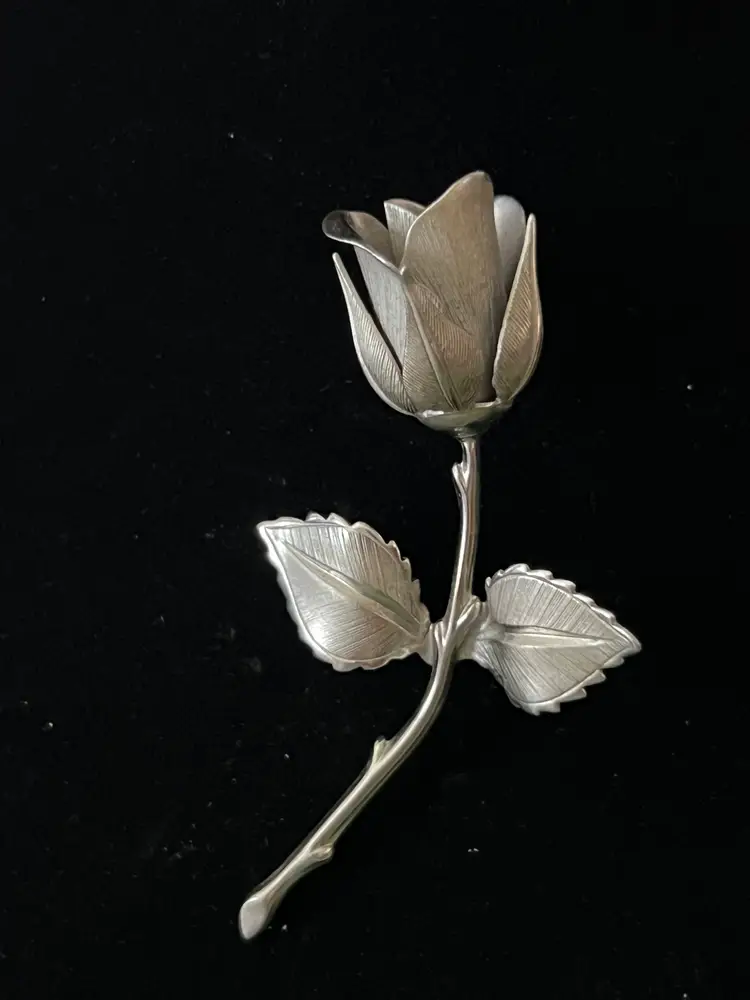Vintage silver tone rose brooch. Signed Giovanni. Great vintage condition. 3 7/8" long