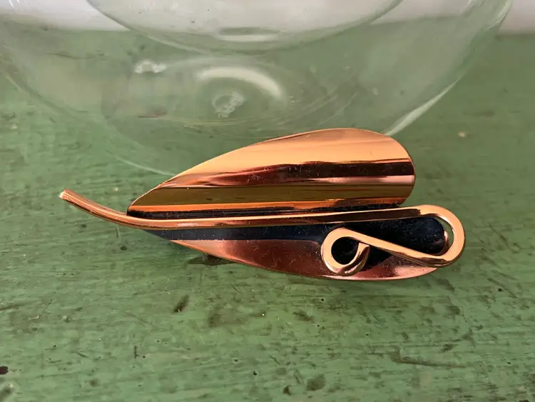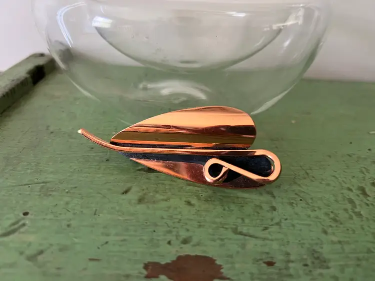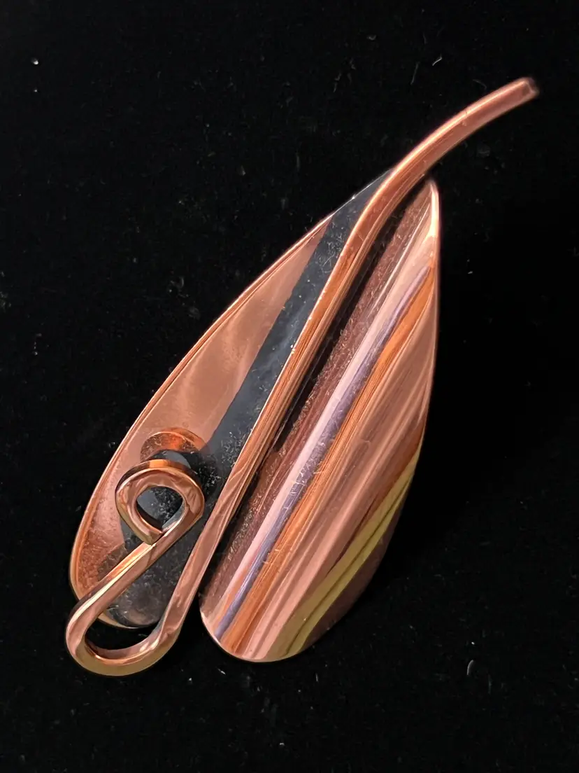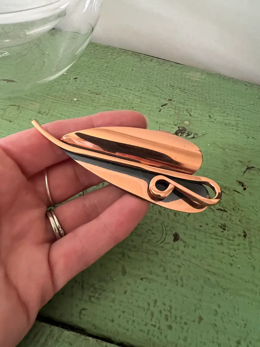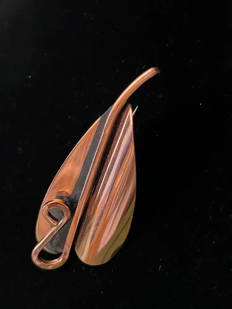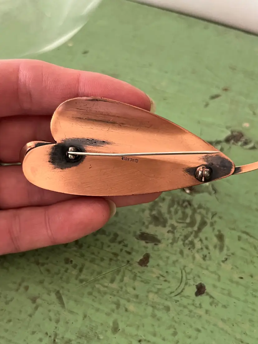 Vintage copper tone abstract leaf brooch Signed Renoir. Great vintage condition. 3.5" long