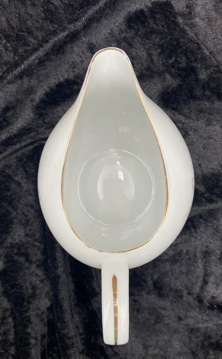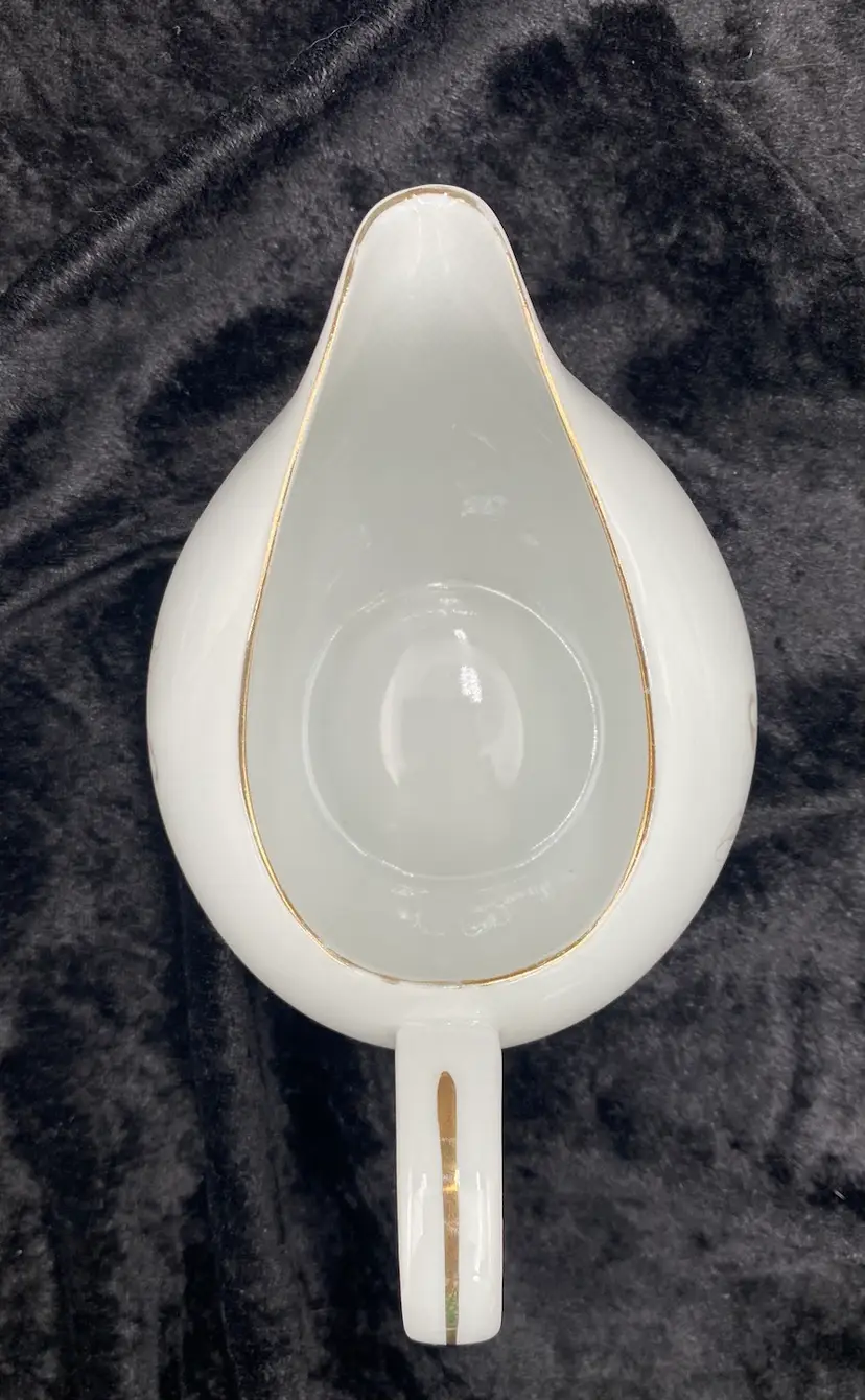 The set is in excellent used condition. There are no chips and cracks. The gold gilt is in very good condition; the only wear is on the back portion and spout area of the creamer. Please see the pictures for a complete sense of description.