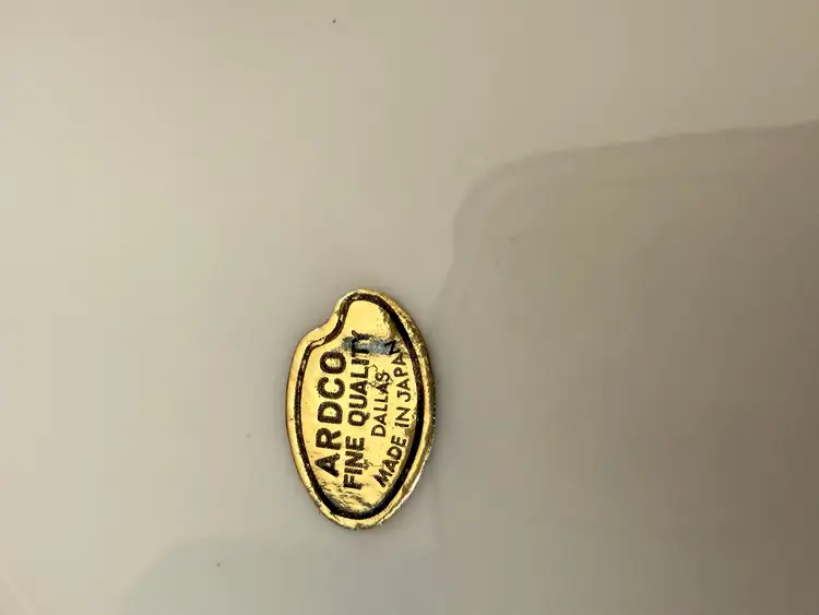 Details: • Maker/Importer: Ardco Fine Quality – Dallas • Marked: Made in Japan (foil label) • Size: approx. 7 inches diameter • Material: porcelain/ceramic • Gold trim edge • Decorative plate – not for food use