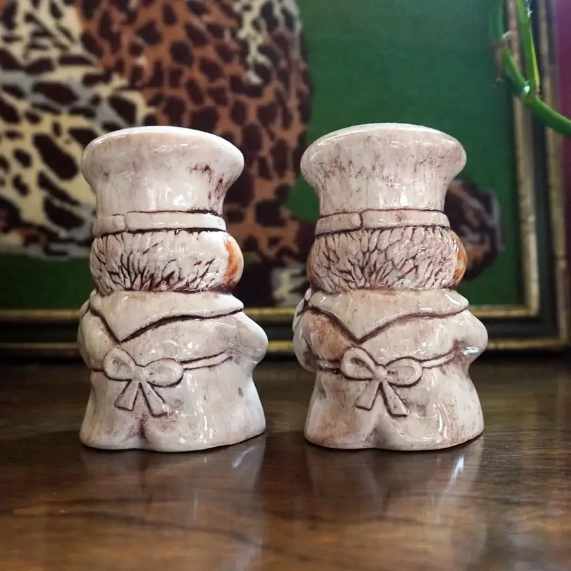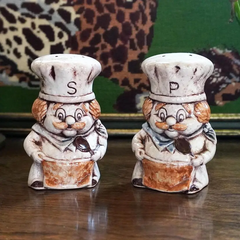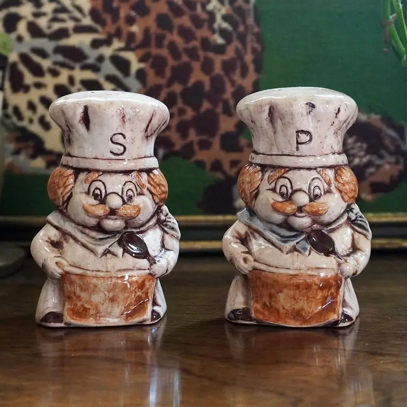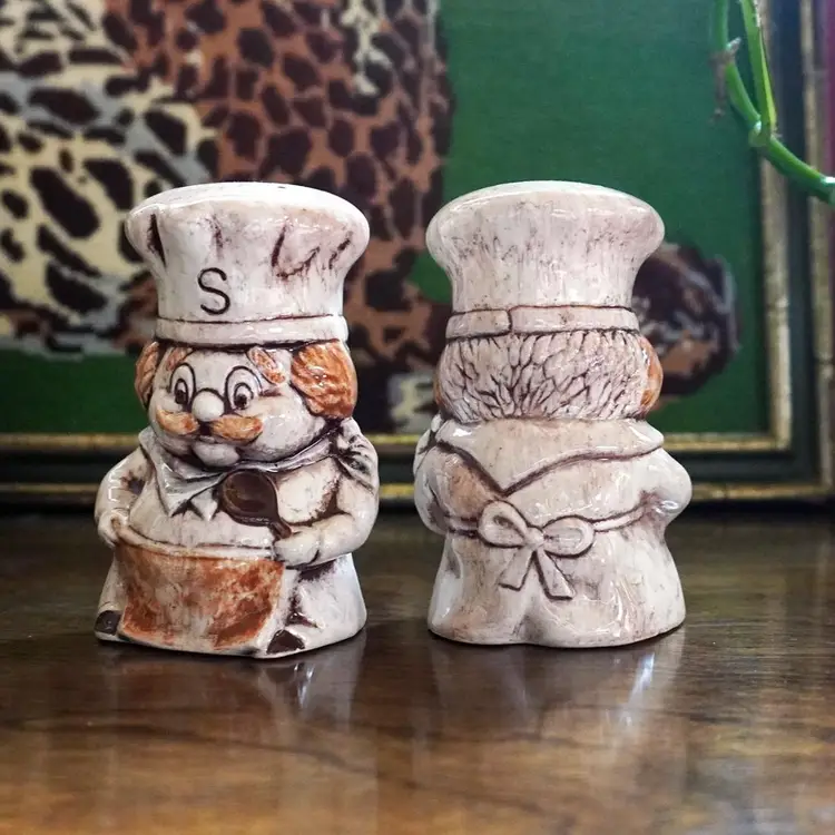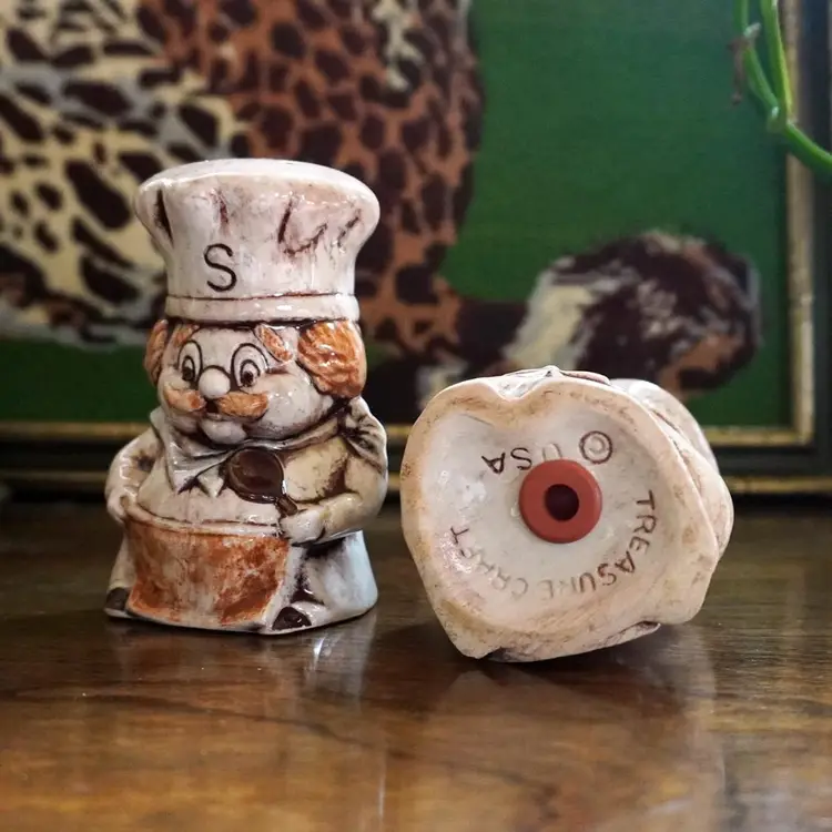 Bring some vintage decor into your kitchen with these extremely cute & kitschy chef salt and pepper shakers. Both have there original stoppers. They are Stamped Treasure Craft on the bottom and made in the USA