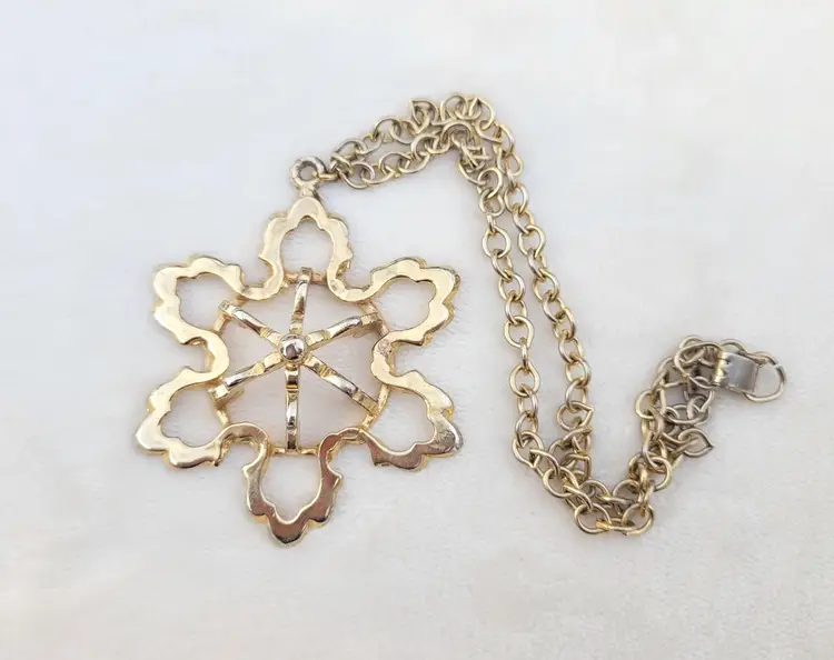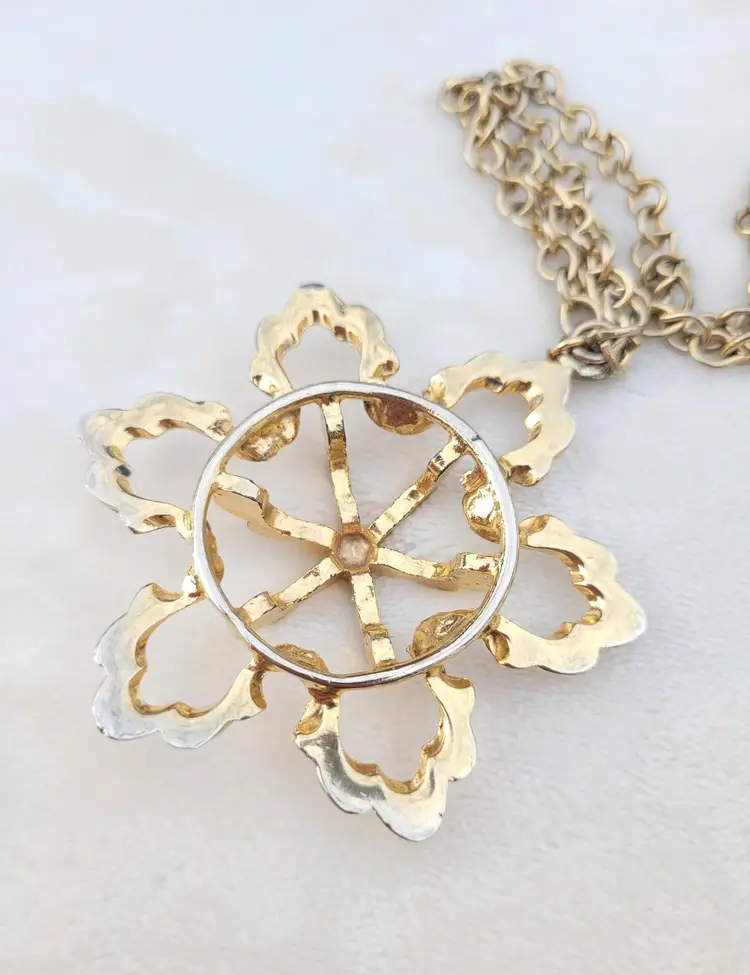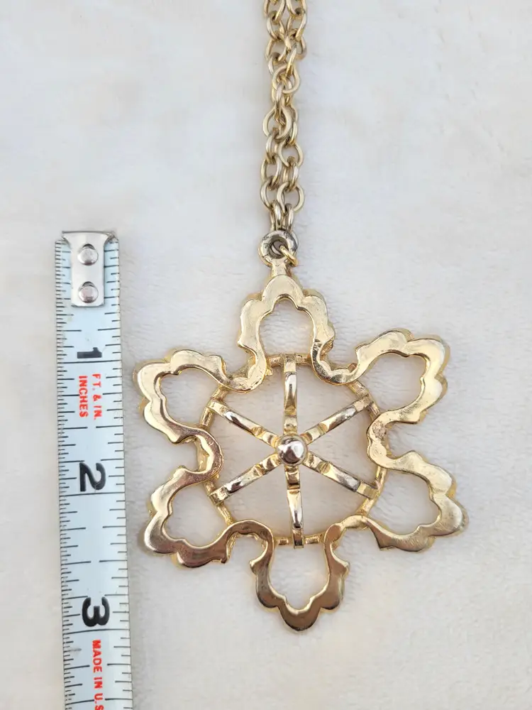 Large 1970s statement piece from an estate. It is in good condition but does have some wear to the plating. Please see pictures for details and measurements.