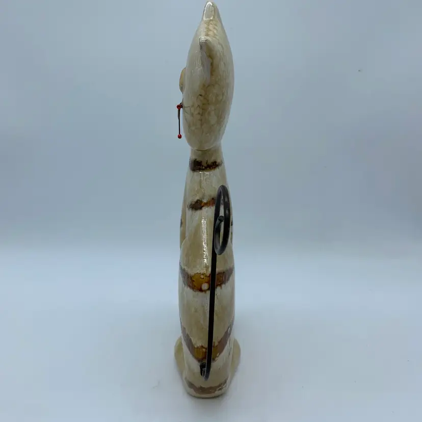 Ceramic figurines have been popular decorative items for centuries, evolving in style and production techniques with different eras and cultures. The mid-20th century saw a rise in whimsical and stylized animal figures, often produced for mass appeal and home decor.