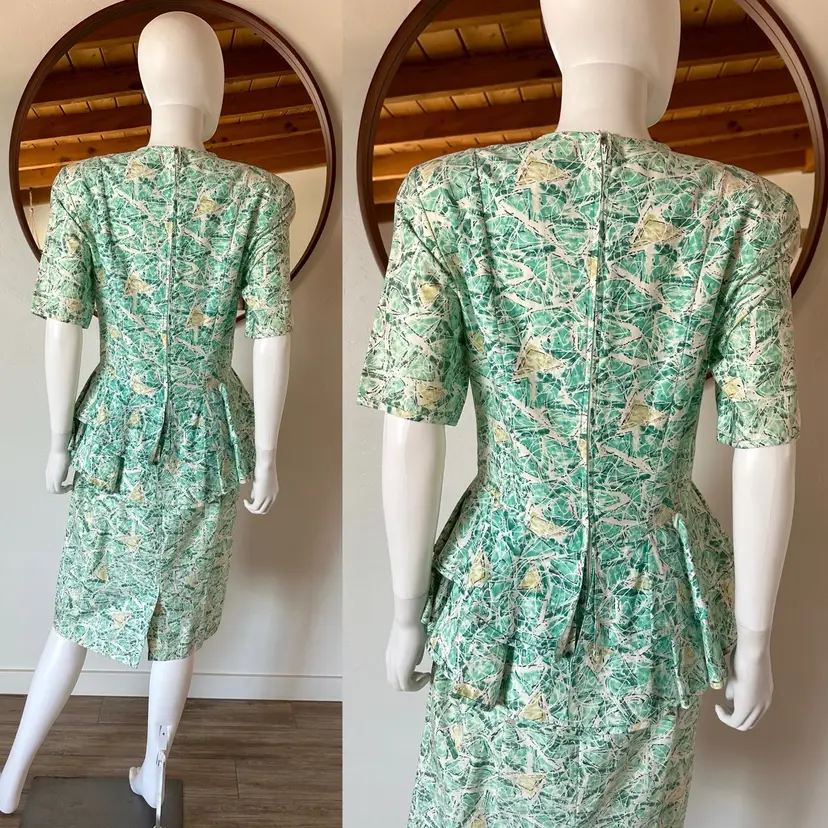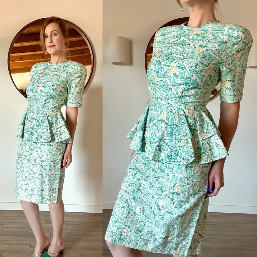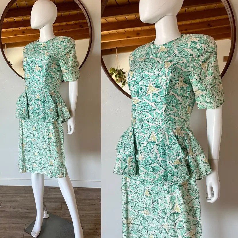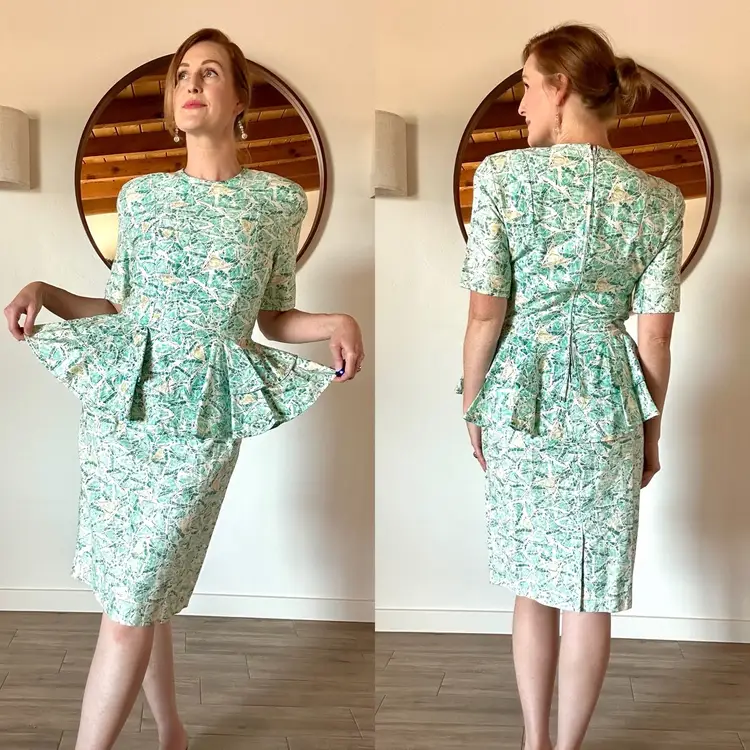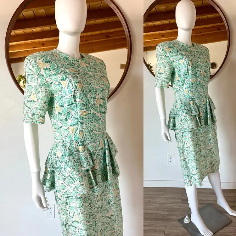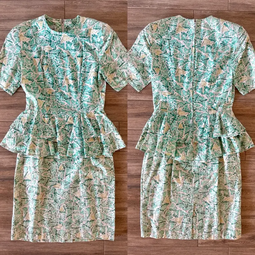 Awesome 80's funky / abstract print peplum dress from Dana Jeffries by Linda Hutley!