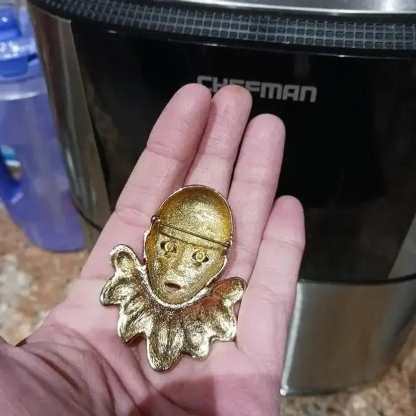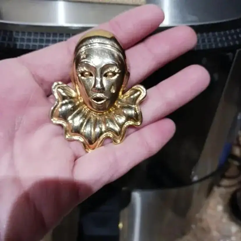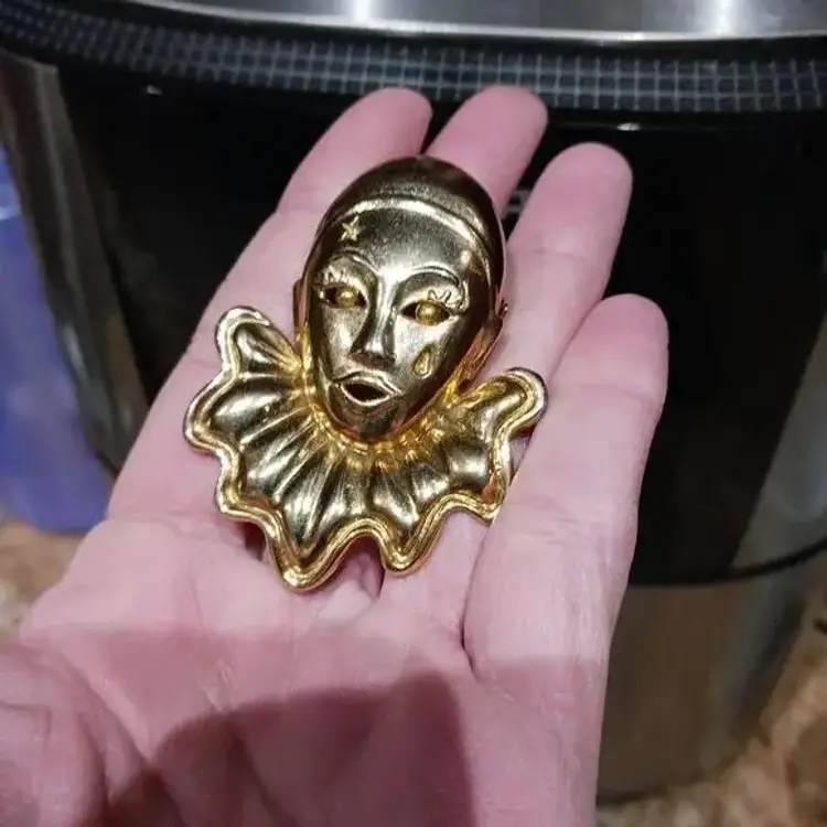 Vintage 80's Large Goldtone Harlequin Clown Brooch. Pre-owned, Great condition.