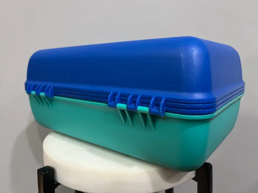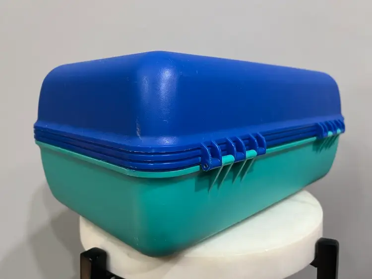 Good preowned vintage condition. There are scratches (mainly on the outside) as pictured. It’s in pretty clean condition for its age. Measures approximately 11.5” x 7” x 5.25”. Message me with any questions.