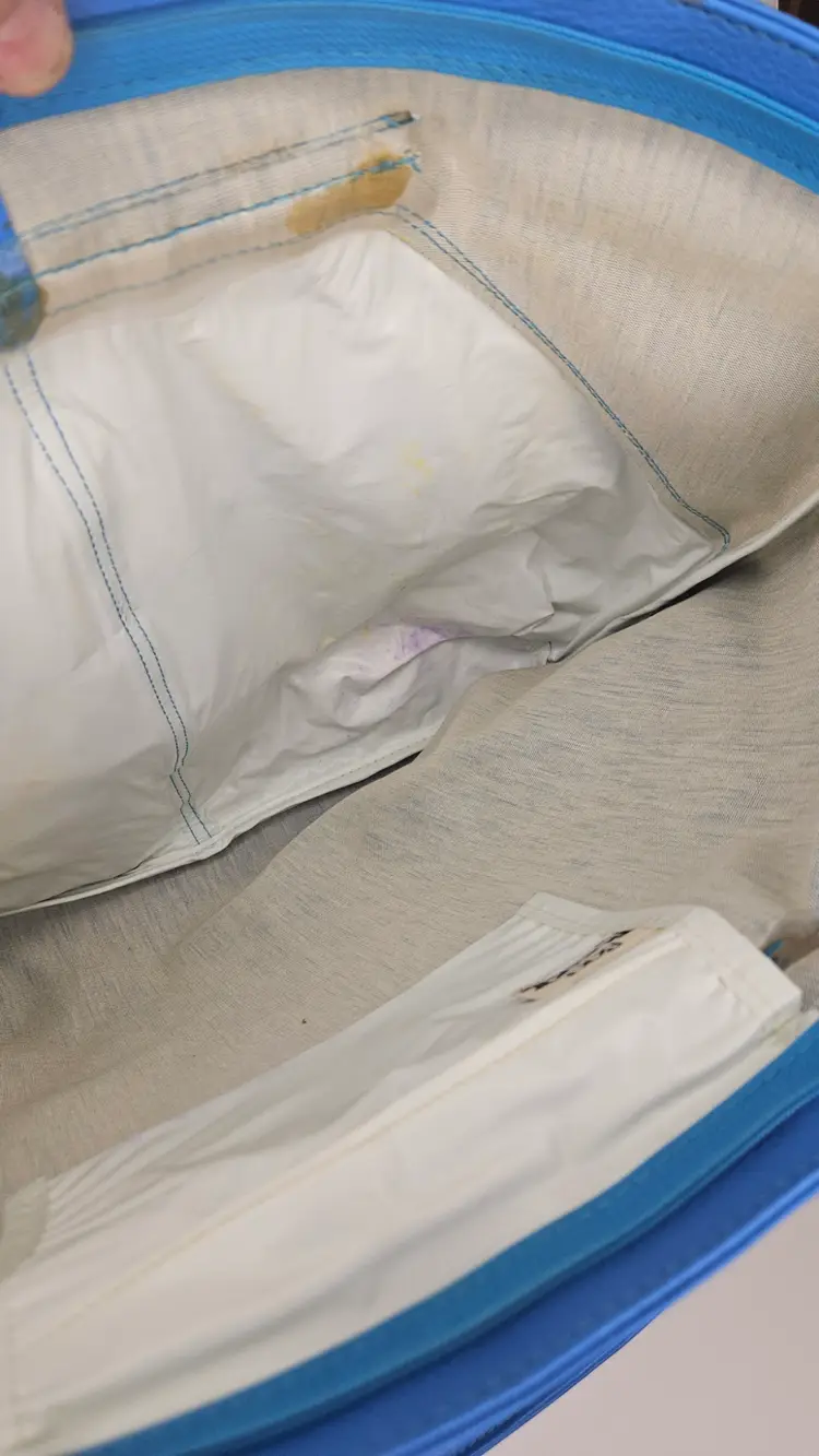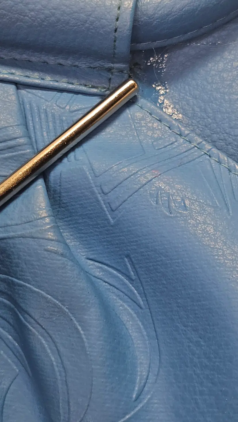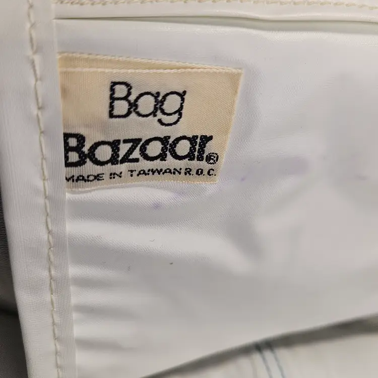 Vintage Bag Bazaar shoulder/tote handbag, blue embossed leather or faux-leather, likely from mid-late 20th century. Features one main compartment with handle straps and geometric emboss pattern. No high-end branding; collectible vintage purse style used condition.