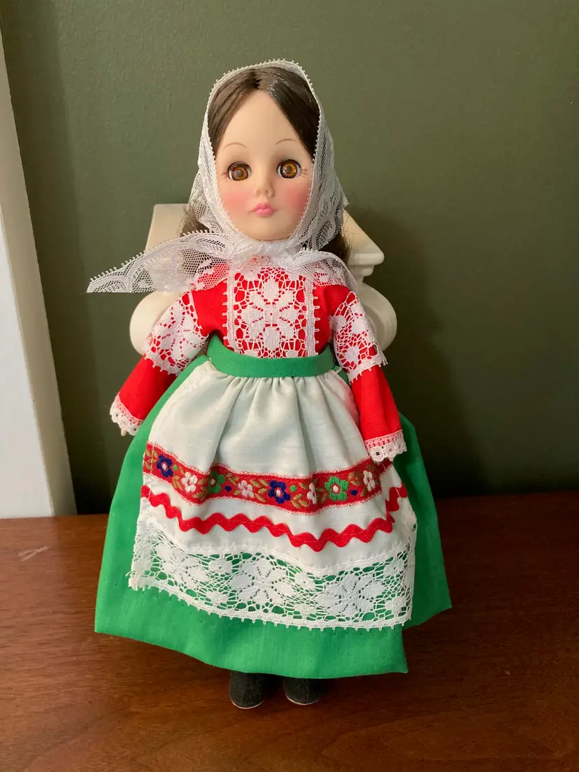 Please note that vintage items may exhibit some challenges: The glue on the shoes may need your attention depending on the age of the doll, as drying over time has caused some of the shoe pieces to come apart. Faux leather may flake off. Strung dolls may have internal rubber bands that are in the process of decay. Most dolls have never been undressed, so there may be staining on the vinyl, in particular, with red or black clothing. Unless otherwise noted (and I try to be as upfront about issues I see as possible), at the time of shipping all parts to dolls are present, but many of these dolls have not been displayed in years nor ever undressed, so please be aware when removing dolls for the first time. These are vintage items, after all. I appreciate your understanding when you buy second-hand and save items from landfills.