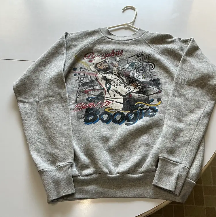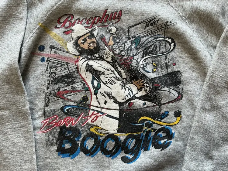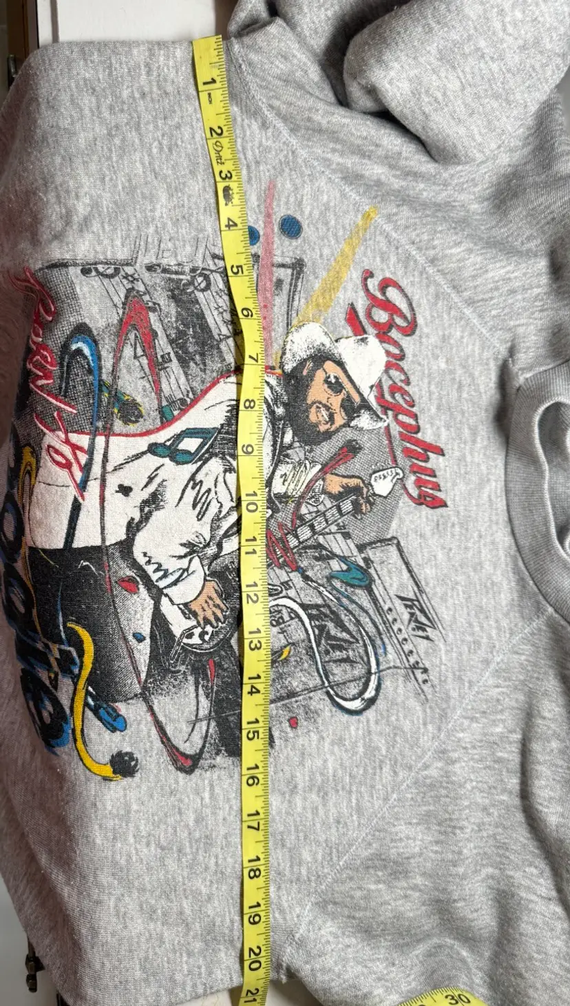 Bocephus vintage 1980’s country music sweatshirt, sz. L (unisex, (please see photos for exact measurements), grey, cotton knit, very good condition other than label missing , one-owner, smoke/free home.