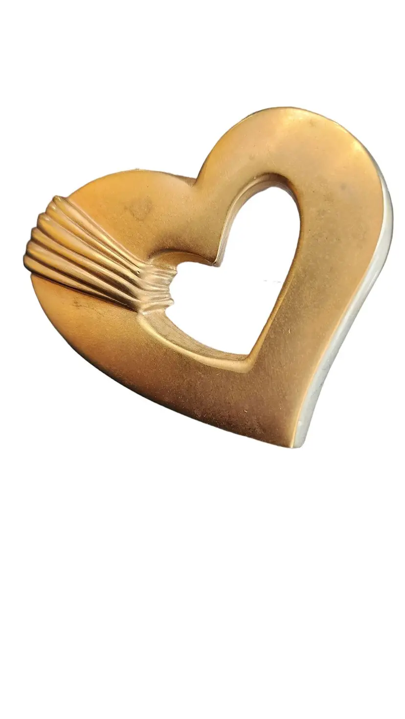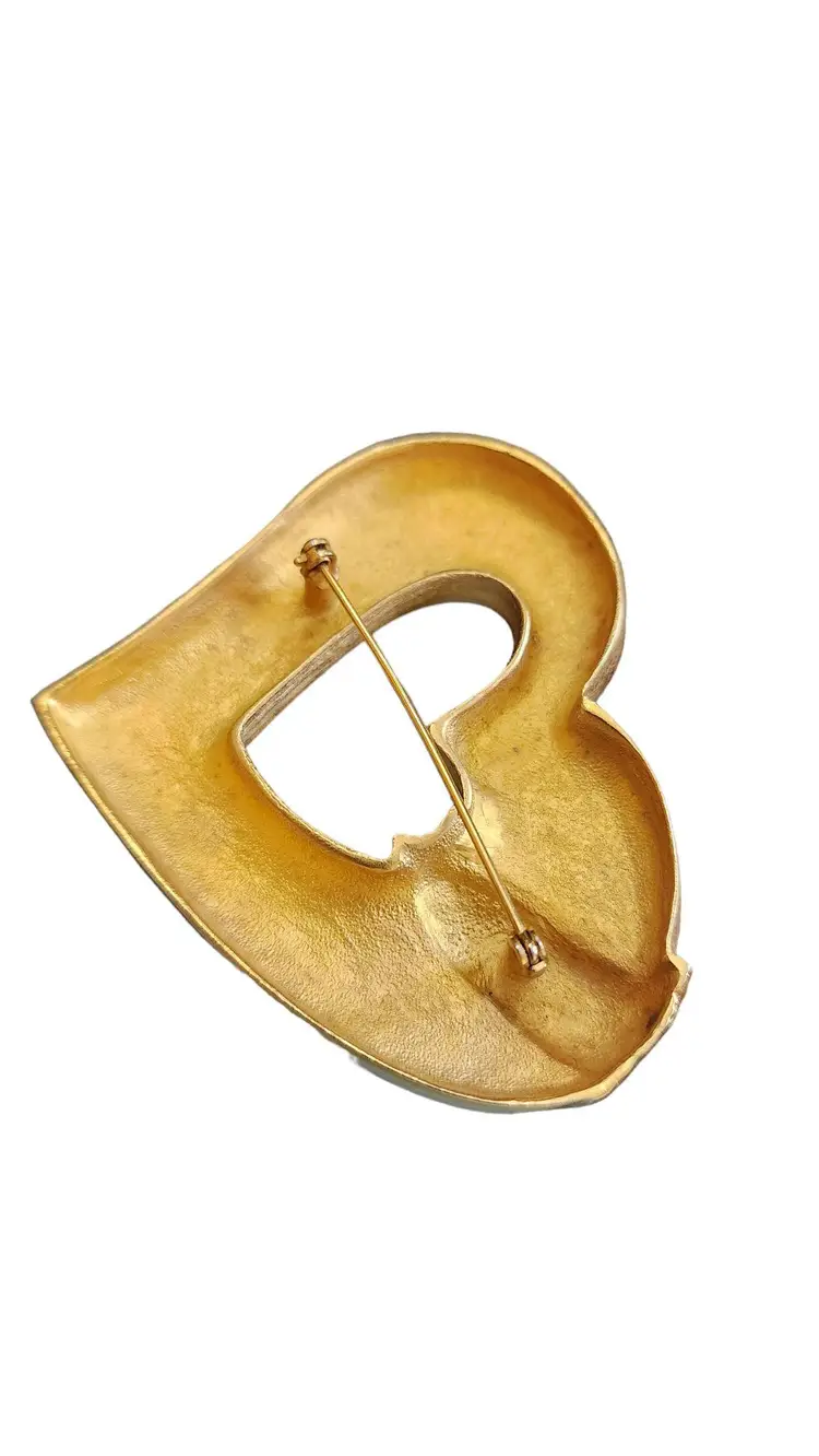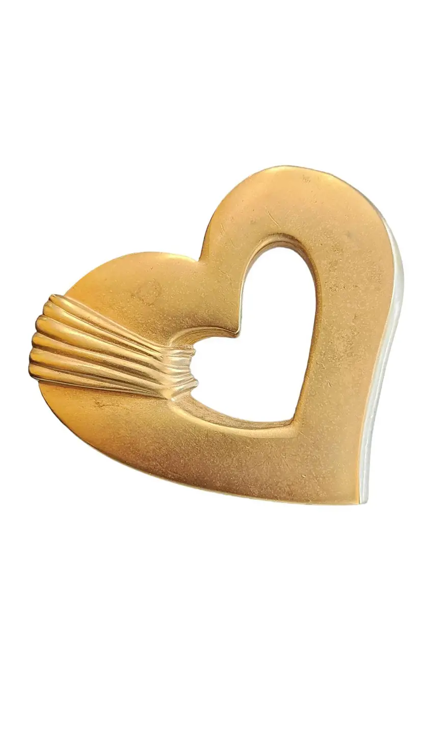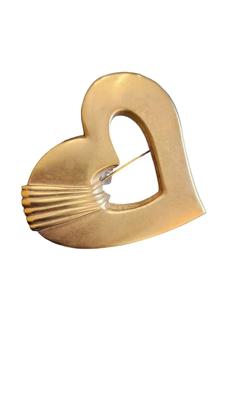 Vintage 80s Heavy Matte Gold Heart Brooch (A2490)