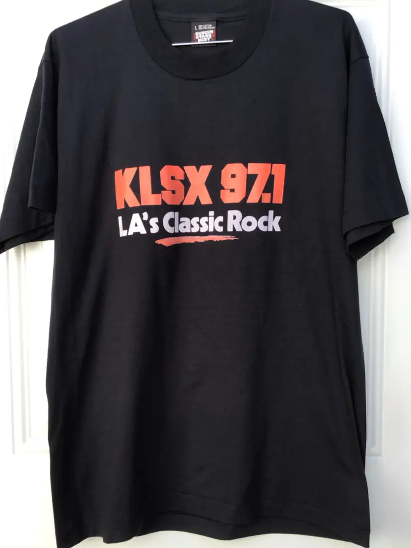 Vintage 80s KLSX 97.1 LA’s Classic Rock, Radio, Logo, Graphic, Shirt. Condition Preowned. Good. Measurements are Pit to Pit 20”, Length 28”. Made by Screen Stars is a stylish piece of retro clothing. Made in the United States, this black t-shirt features a classic rock radio station logo from the 1980s!