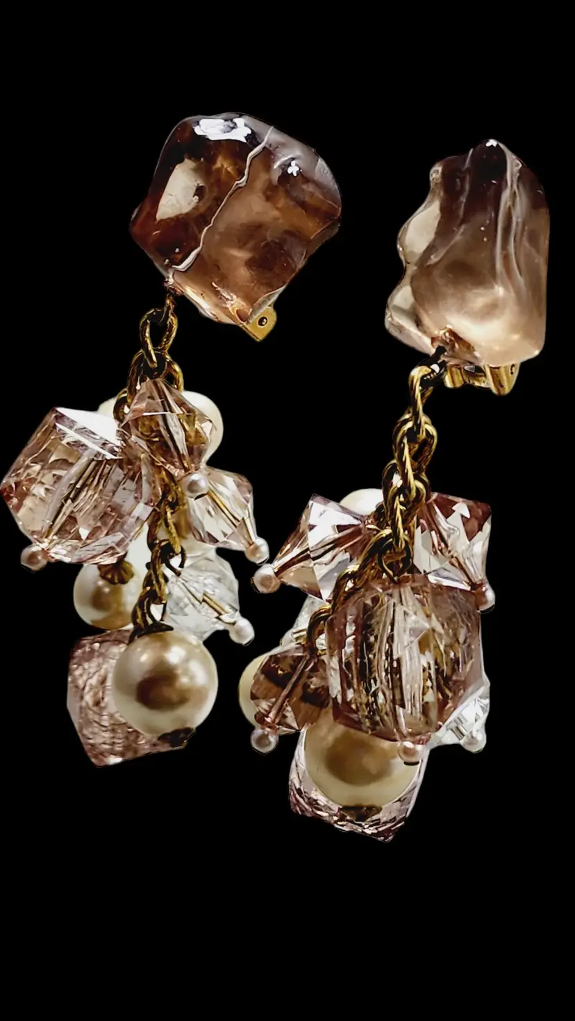 Vintage 80s Lucite Clip Earrings (A2547)