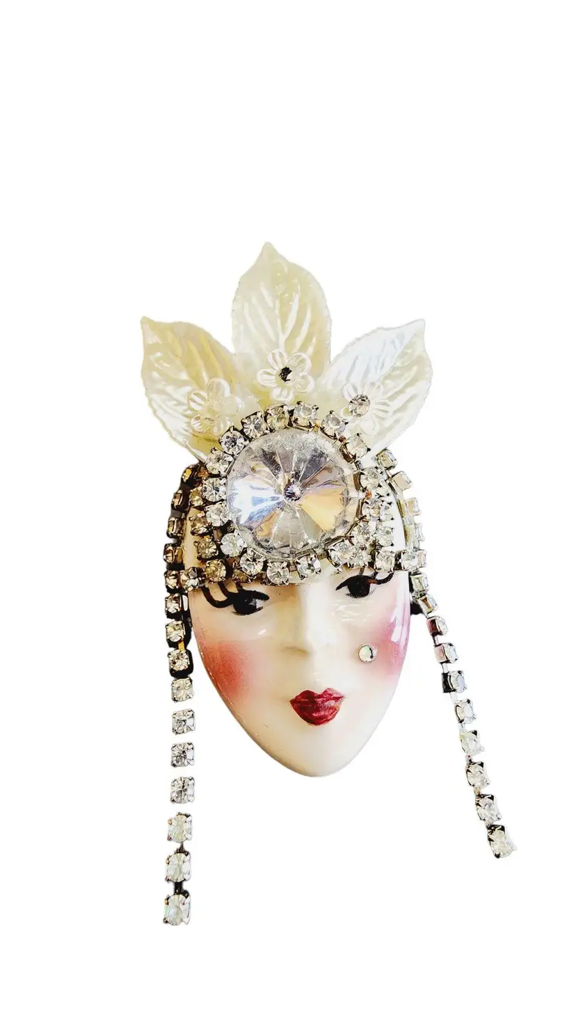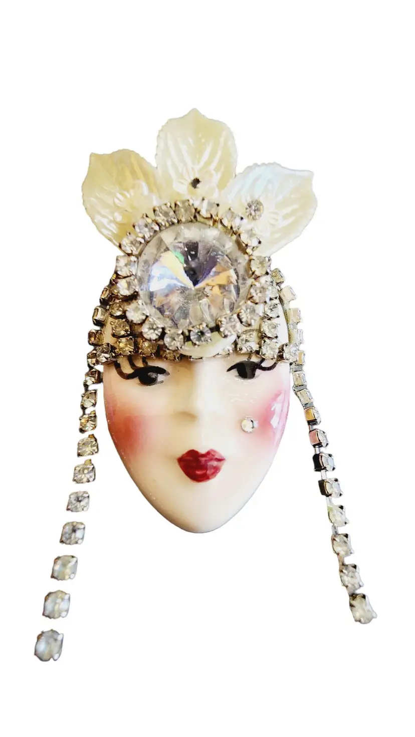 Vintage 80s Porcelain Signed Lady Brooch (A2989)