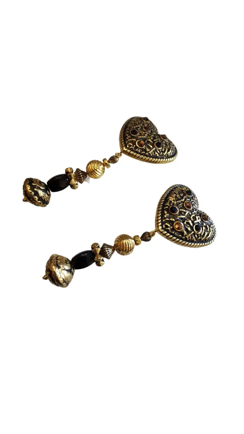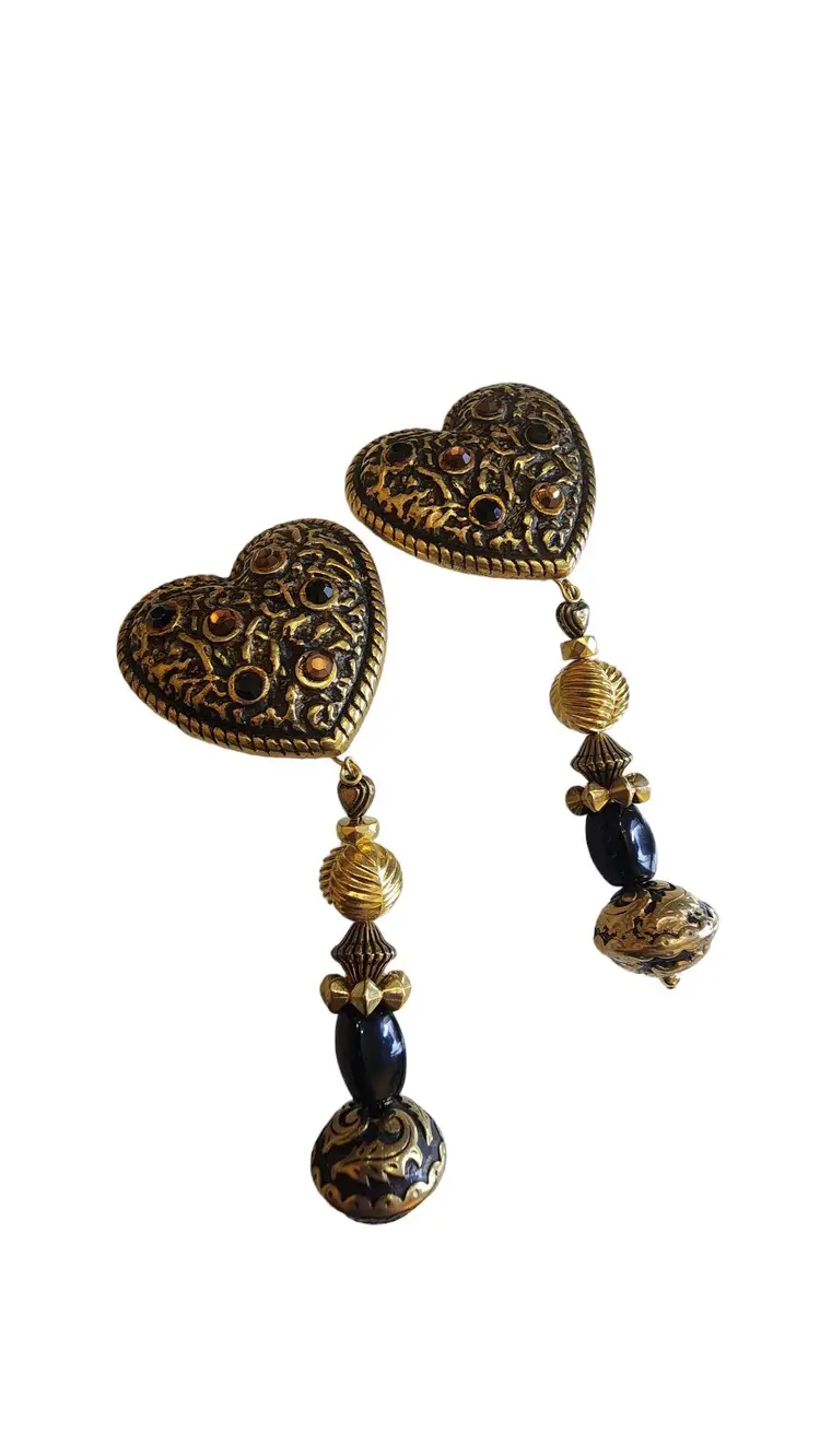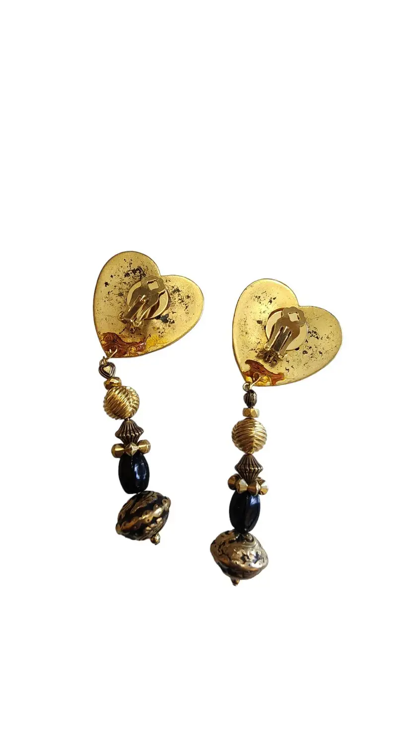 Vintage 80s Resin Heart Clip Earrings (A573)
