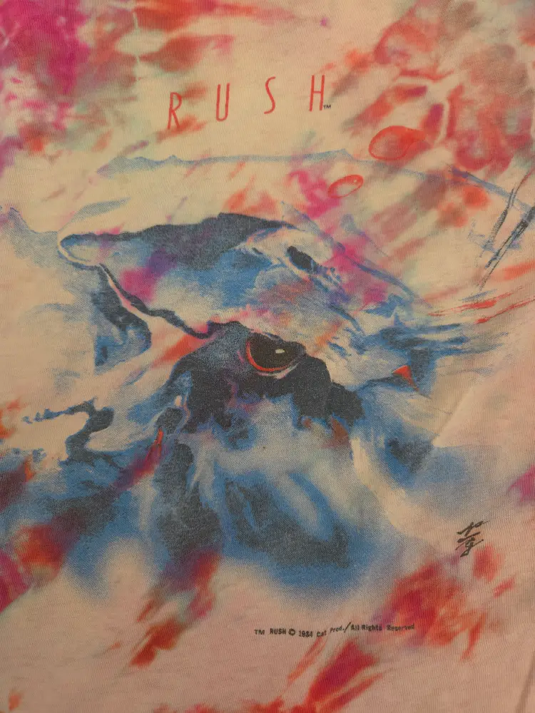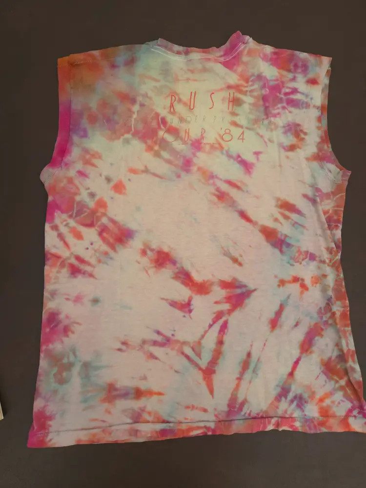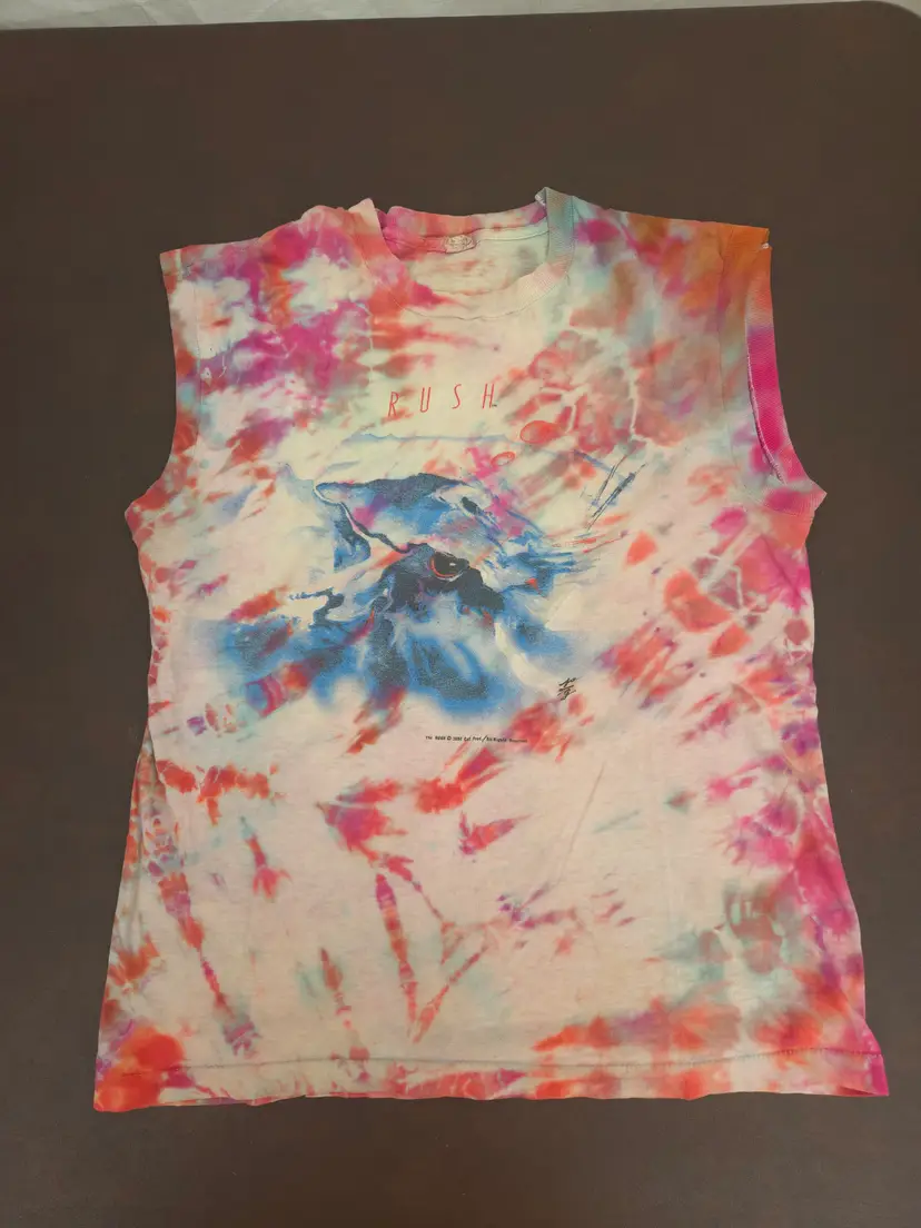 Vintage 80s RUSH Tie dye Grace Under Pressure Tour 1984 Shirt Sleeveless Multicolor Size L Brand - Screen Stars Womens Plus LP inside manual/magazine Good conditions