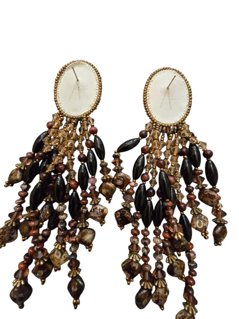 Vintage 80s Unsigned Chipita Stone And Crystal Shoulder Duster Earrings (A9469)