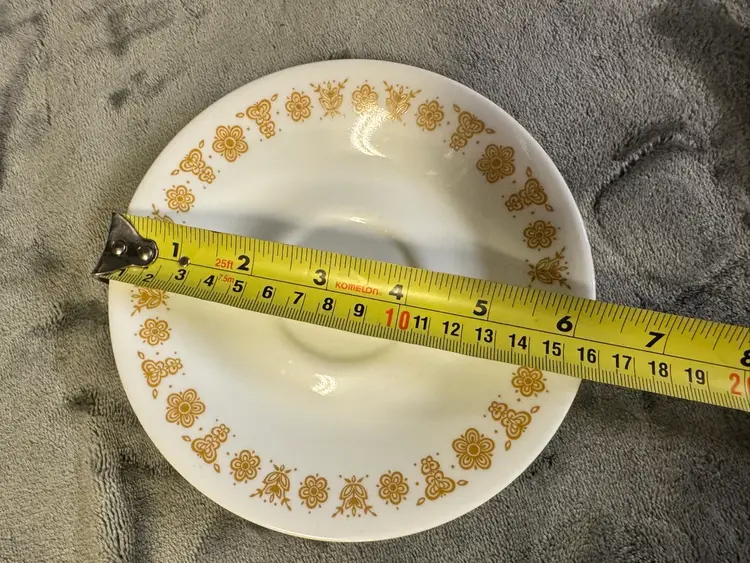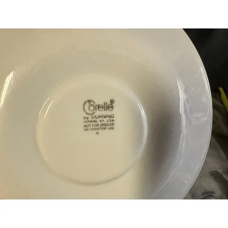8 available. This vintage Corelle Butterfly Gold tea coffee cup saucer plate set includes a classic circle saucer. Corningware with a white color and butterfly gold pattern, these stackable saucers are elegant and stylish. These Corelle saucers are a charming addition to any table setting with their vintage original design and butterfly theme. Excellent condition. No chips, cracks, scratches, or staining.