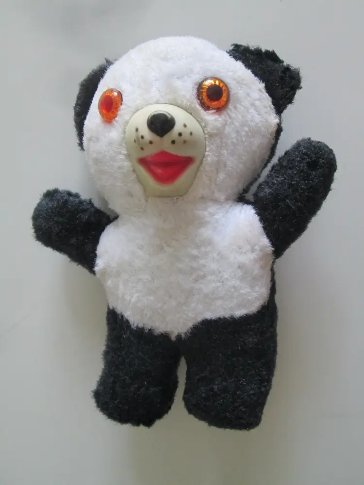 Vintage 9" Panda teddy bear with a rubber muzzle. He is good overall condition except for a worn area in front of his left ear. I estimate him to be from the 1950's. From a smoke and pet free home.