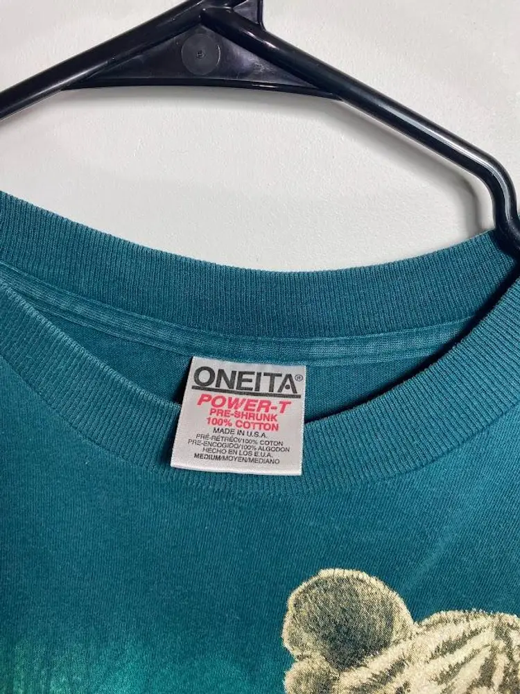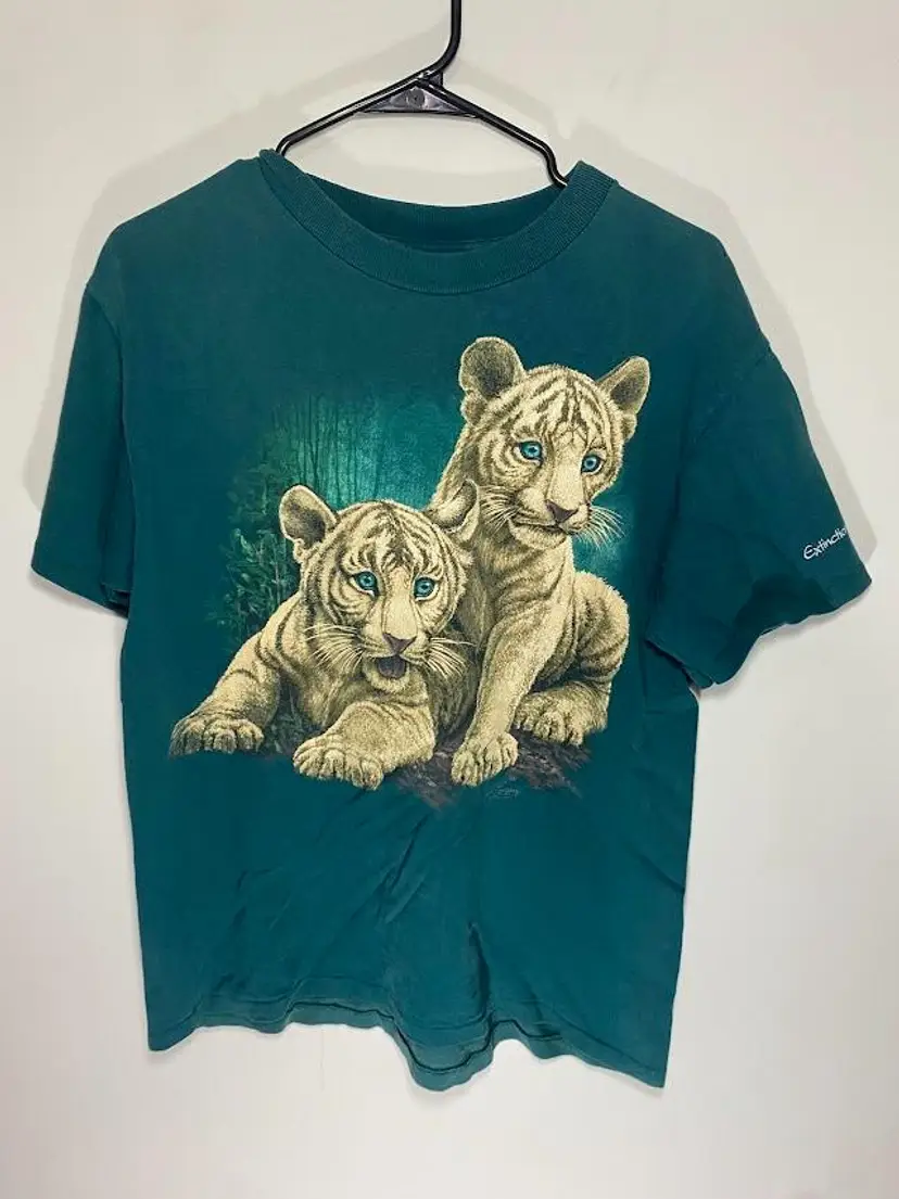 Unisex vintage 90's Oneita white tiger cub single stitch tee. Size M. Overall good vintage condition. Some cracking in the image as pictured. One small hole near the shoulder as pictured. Pit to pit: 20.5". Total length: 26".