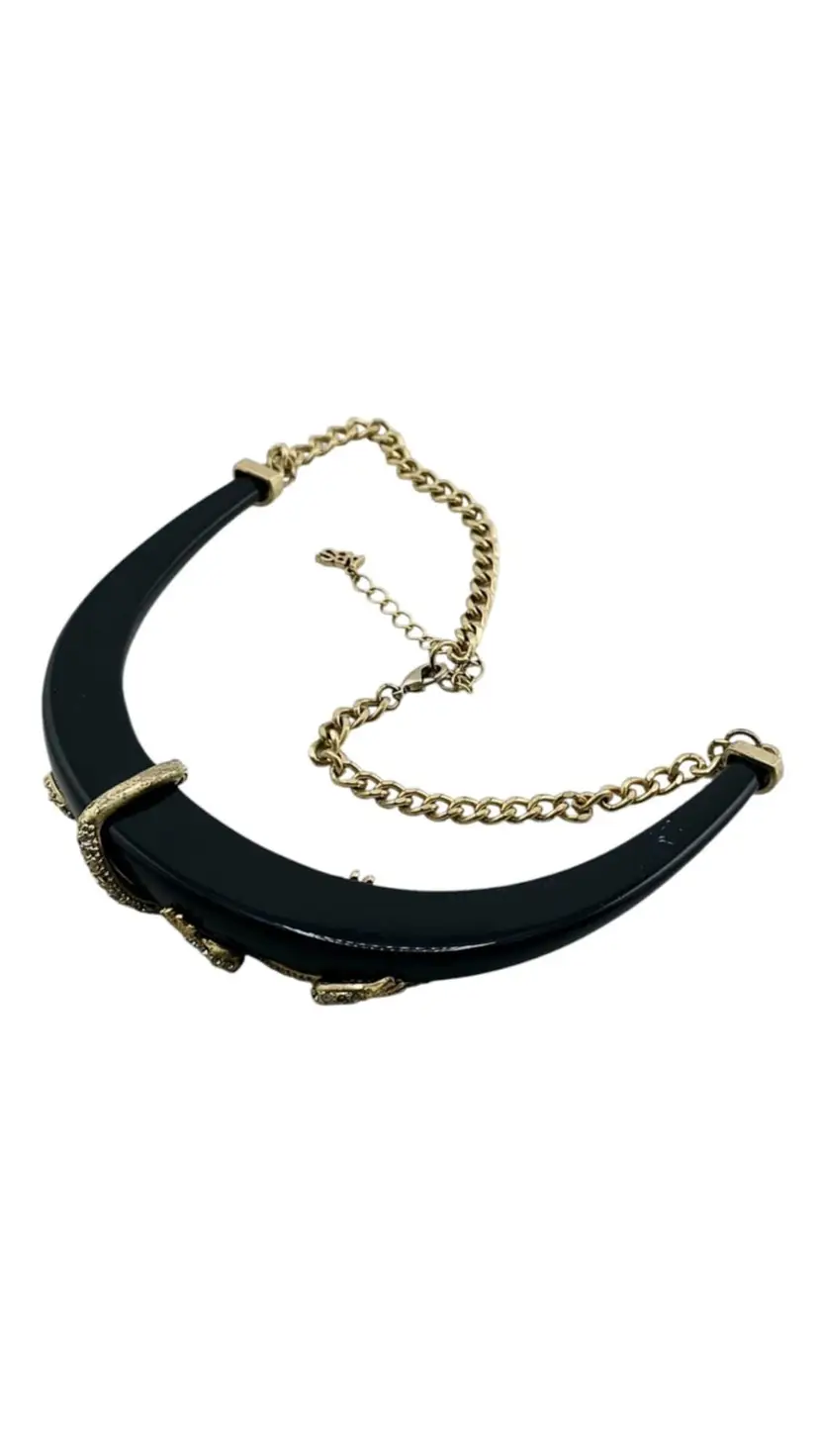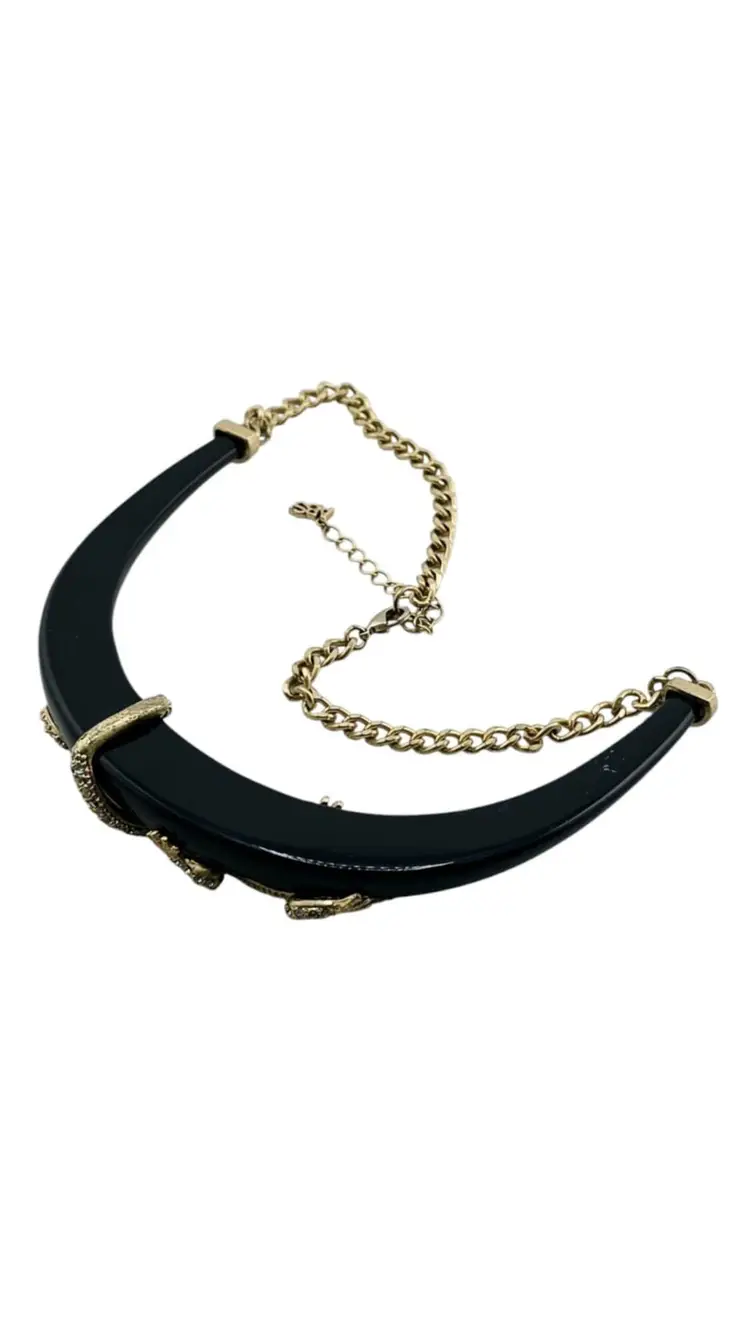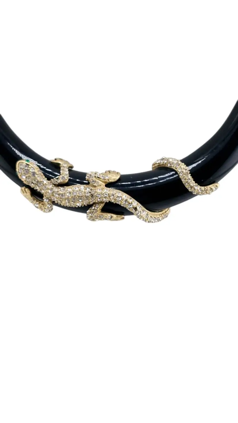 Vintage 90s ABS Rhinestone Lizard Collar Necklace Black Enamel Statement Piece (A829)