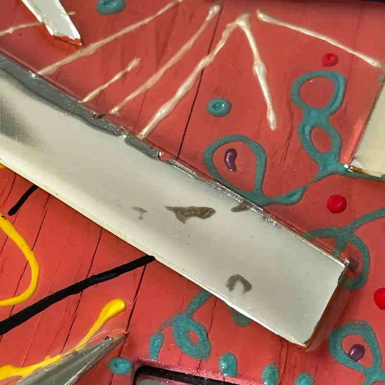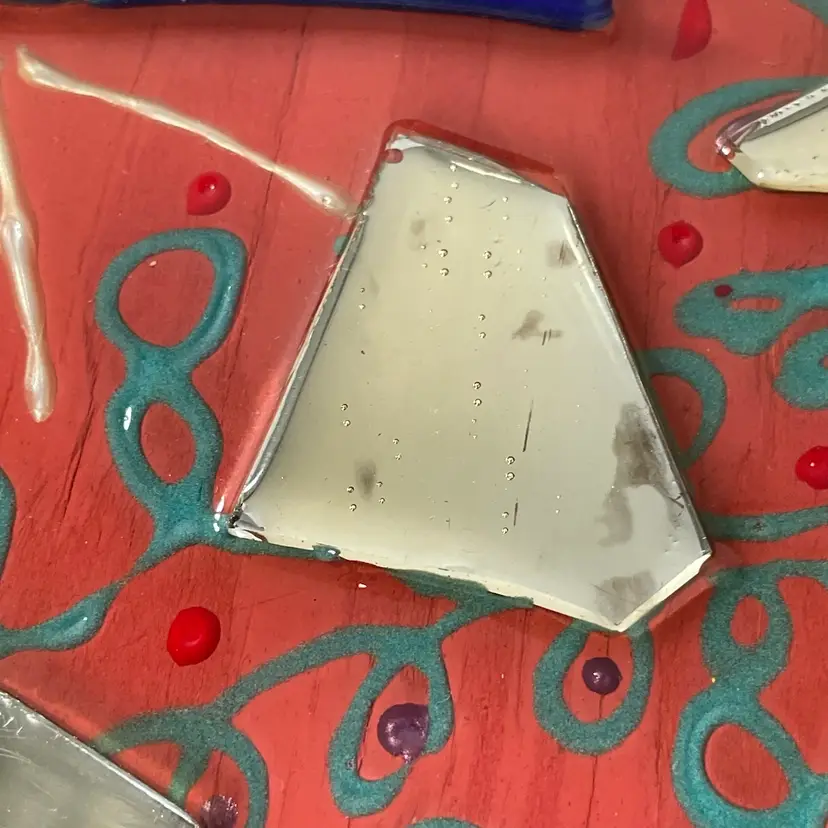 Good Preowned - visible wear and/or minor flaws present. One little mirror is split but secured under resin, pictured. Some of the mosaic mirror pieces have desilvering.