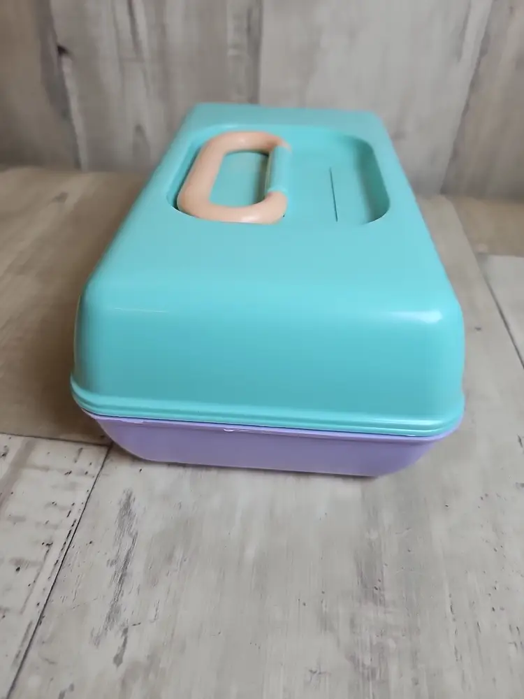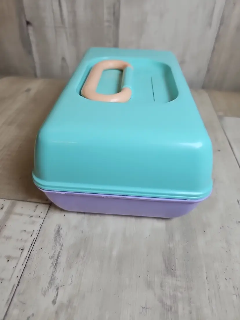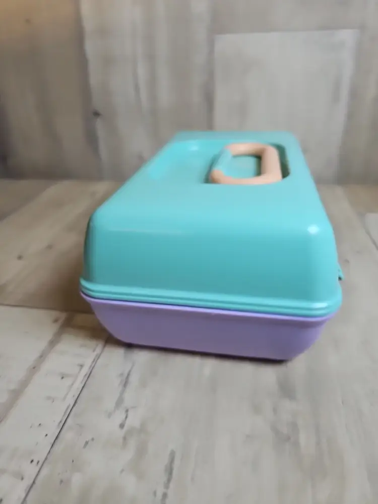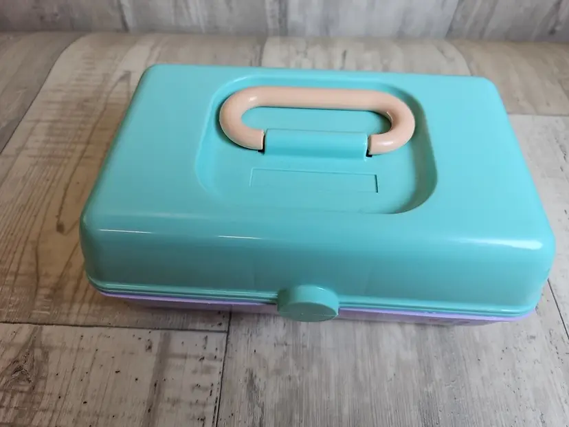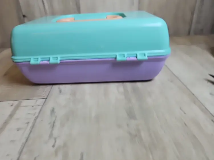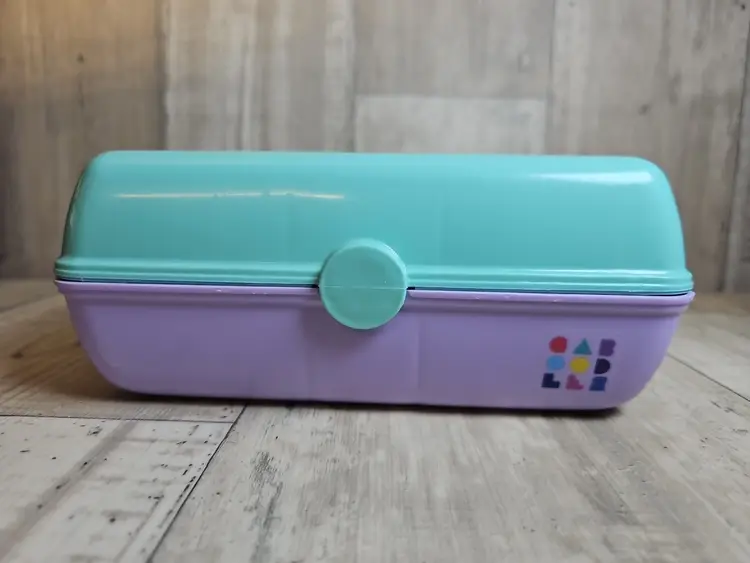 Step back into the 1990s with this classic Caboodles makeup case in the popular Seagram Green and Lilac color combo.