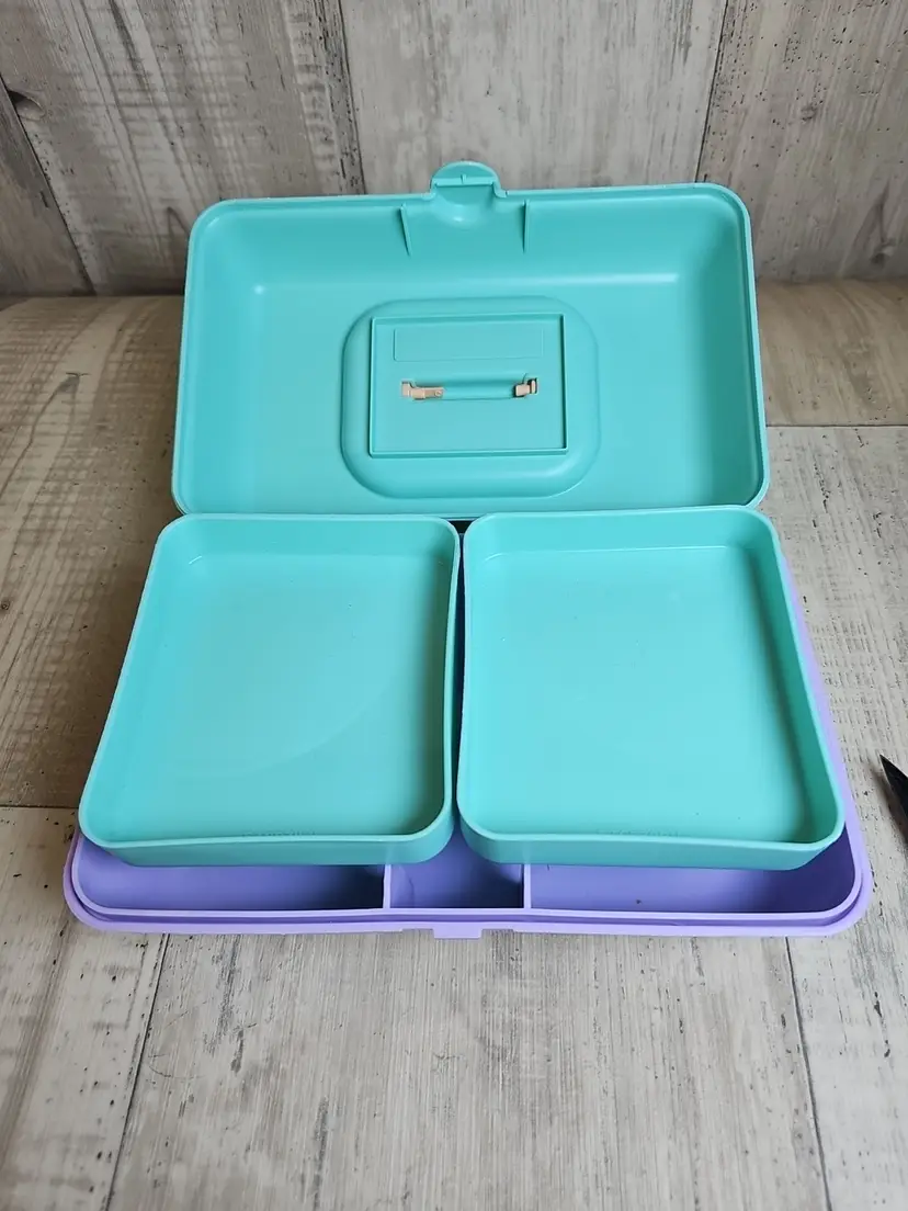#VintageCaboodles #90sCaboodles #RetroMakeupCase #SeagramGreen #LilacCaboodles #SmallCaboodles #CosmeticOrganizer #JewelryStorage #VanityOrganizer #1990sNostalgia