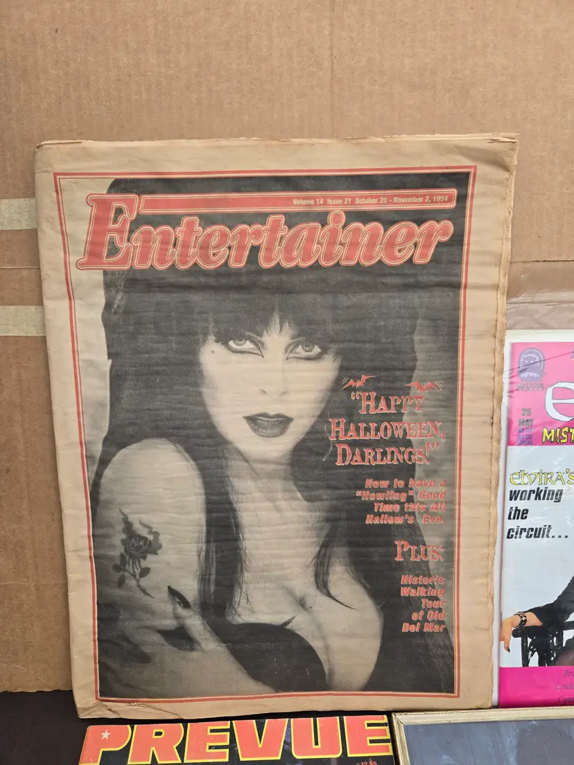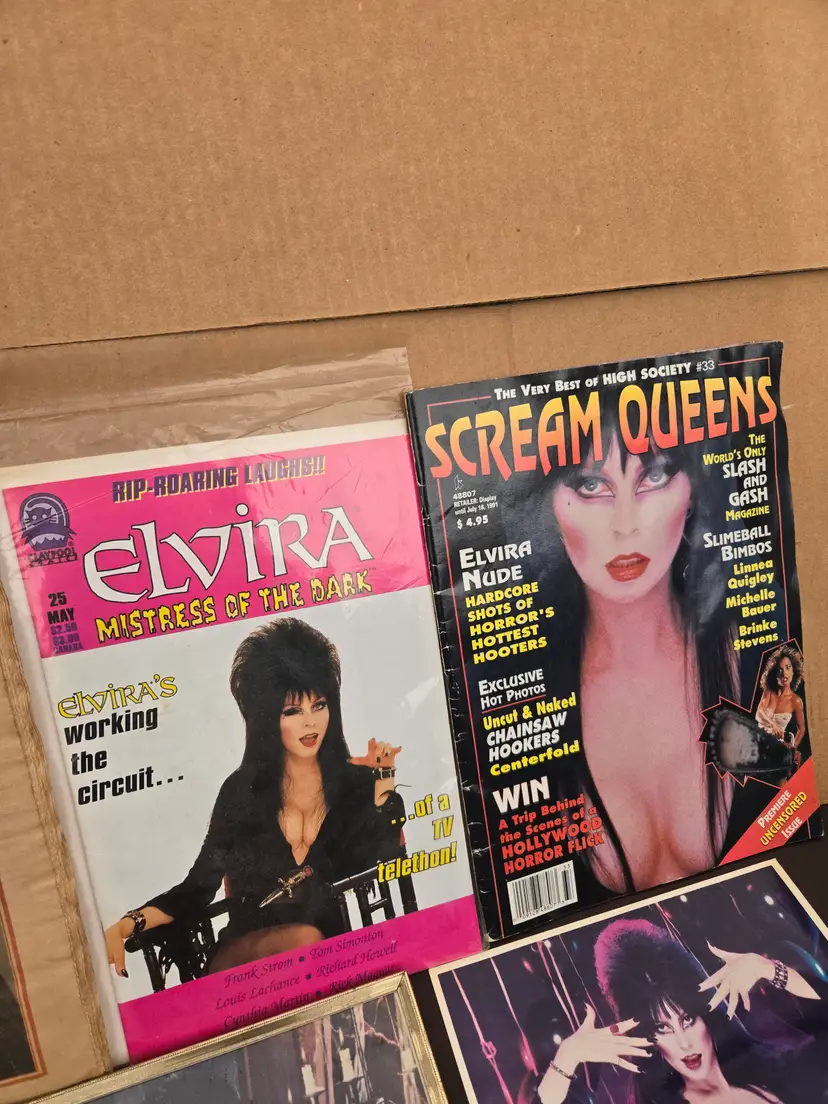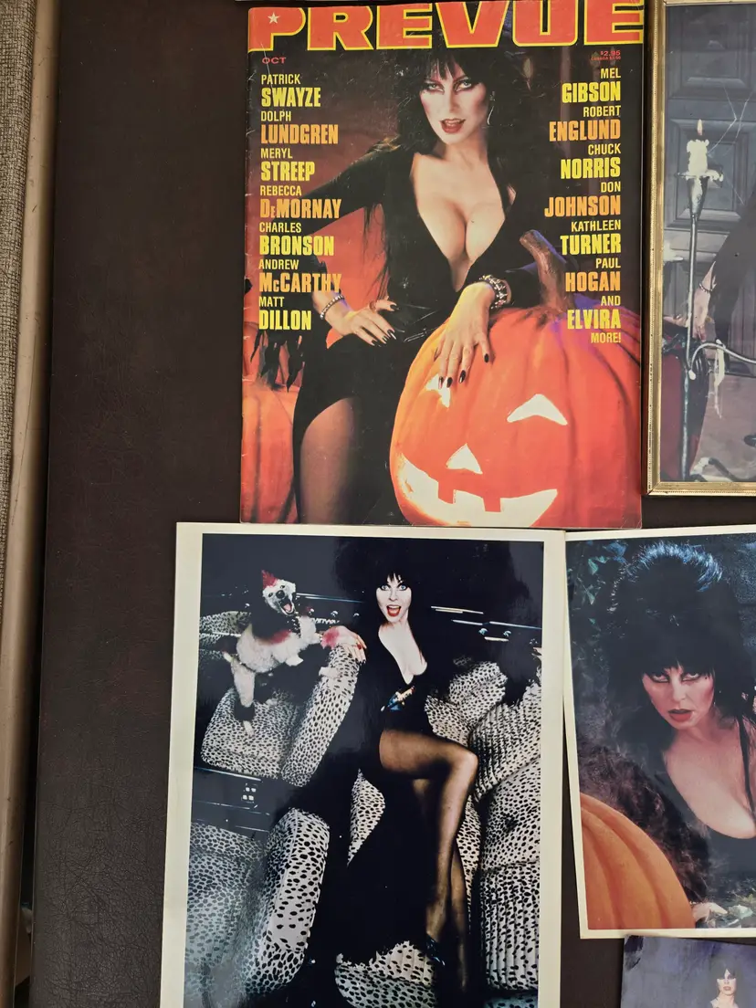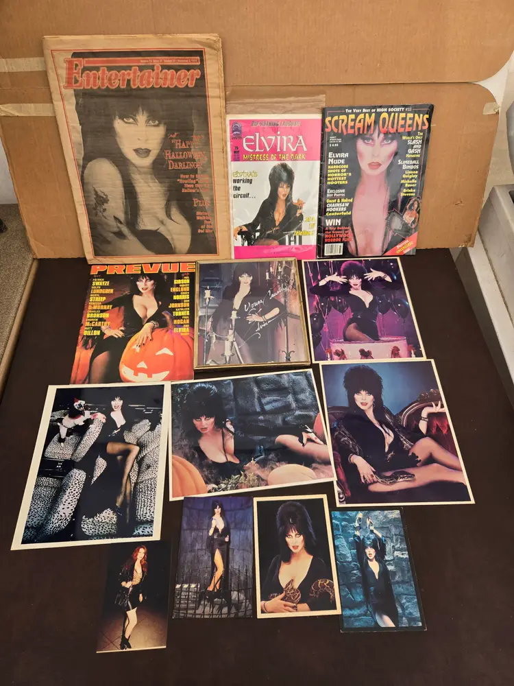 Vintage 90s Elvira Mistress of the dark Mix lot Newspaper Magazines Comic Pictures ( 1pic signed) Good conditions See pictures for conditions and details